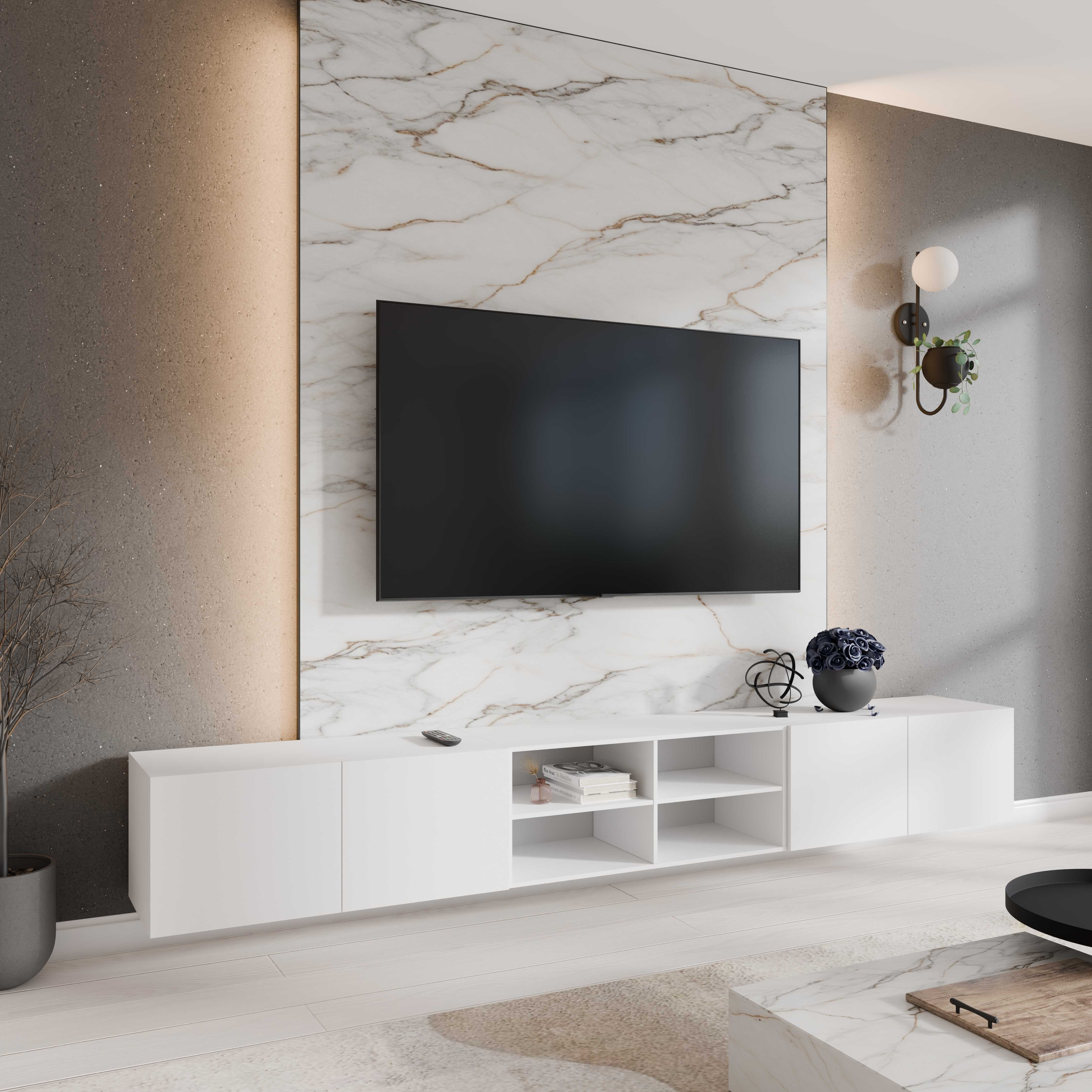 Szafka RTV Wisząca LIO 300 cm otwarta biała – dla kogo?
