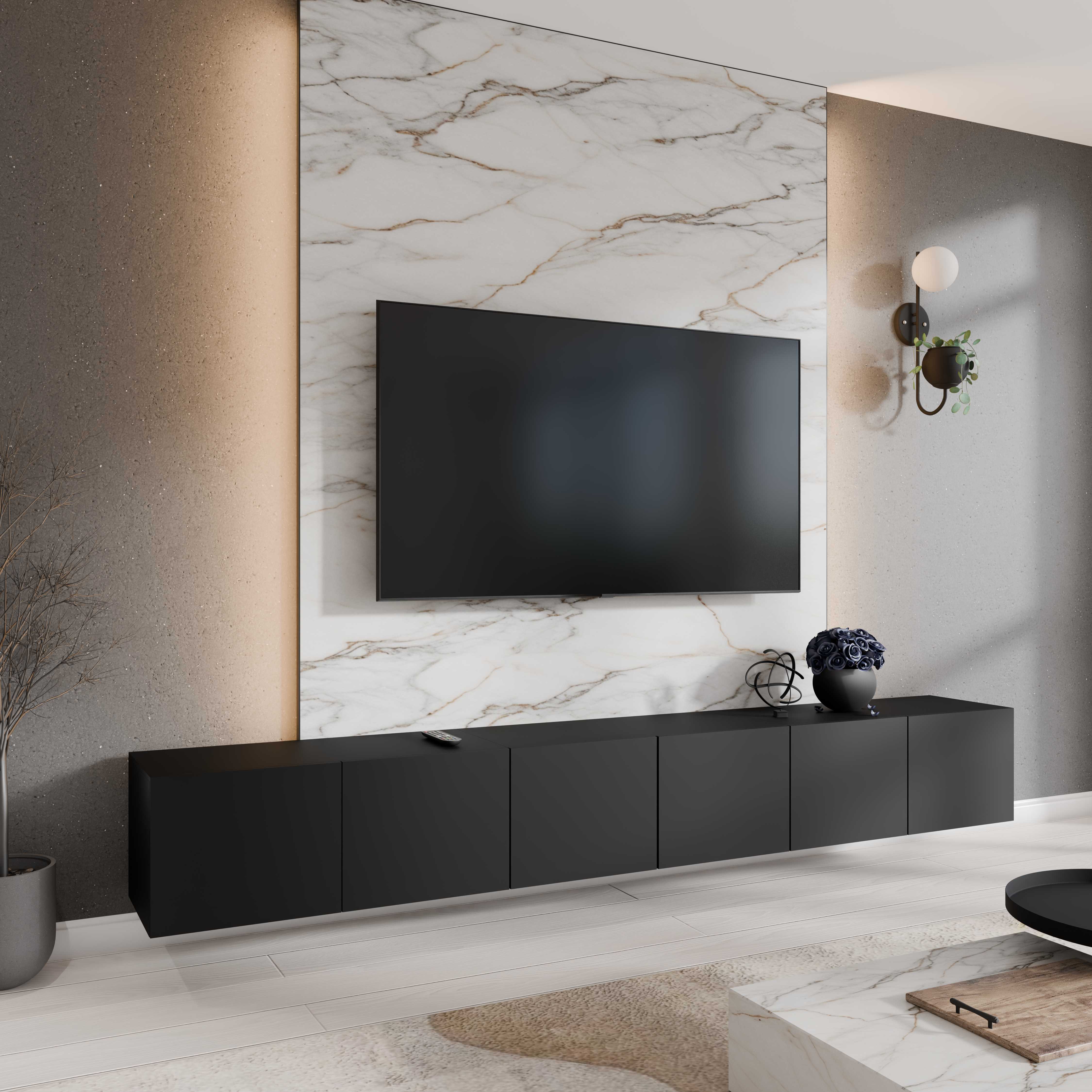 Szafka RTV Wisząca LIO 300 cm zamknięta czarna – czym się wyróżnia?
