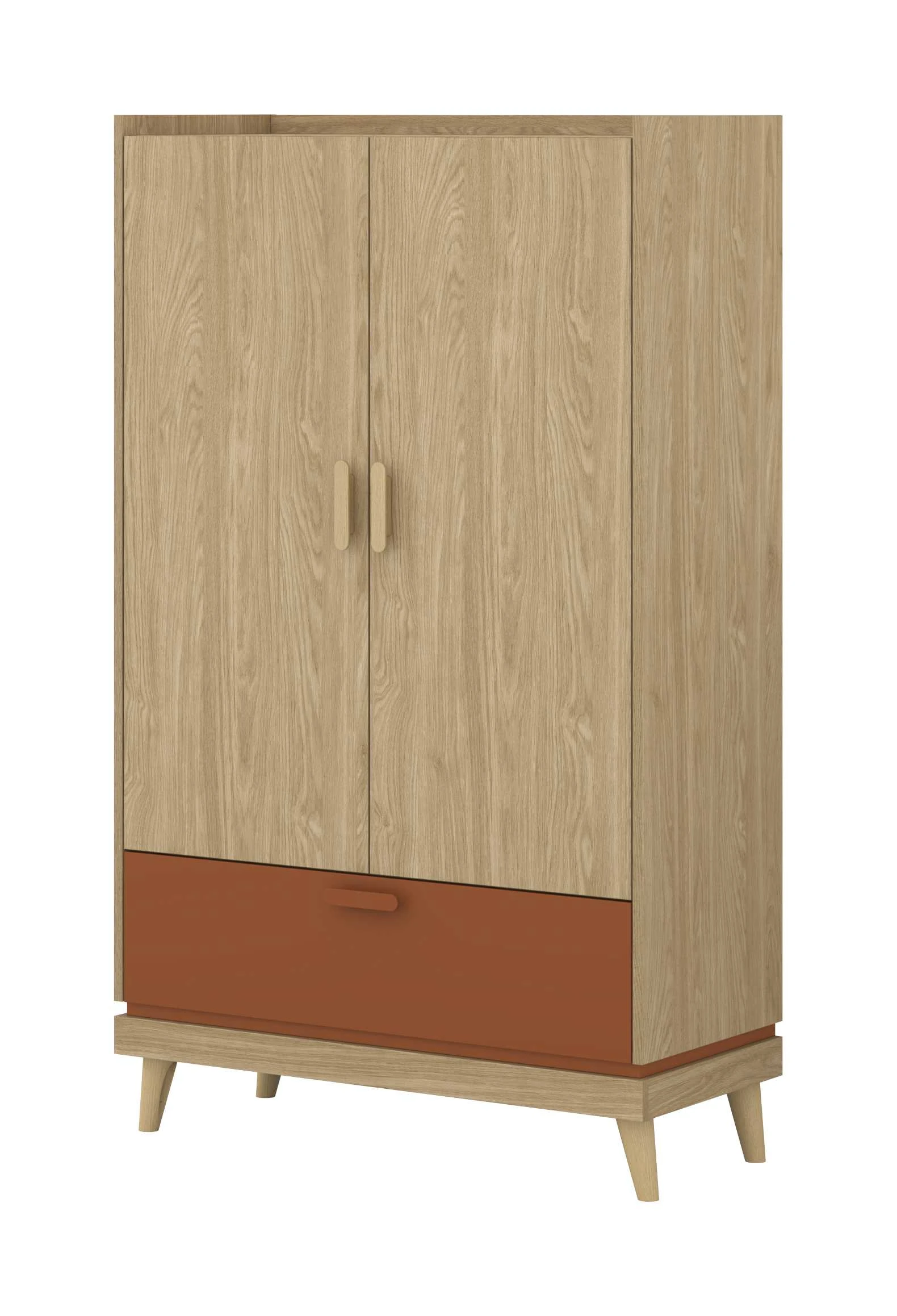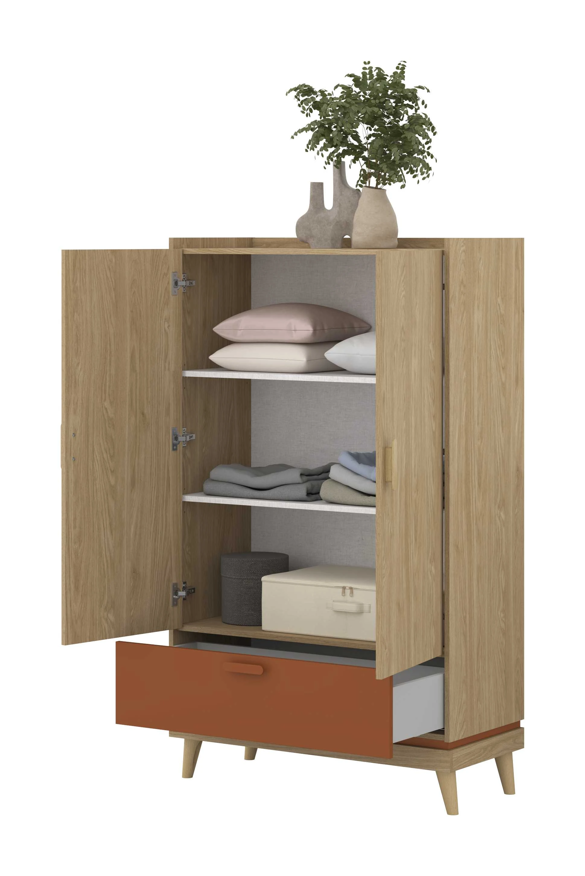 Bieliźniarka SCANDI Szerokość 90 cm Dąb Olejowany / Ceglany Dwudrzwiowa Szuflada Helvetia Meble 24D5OH38