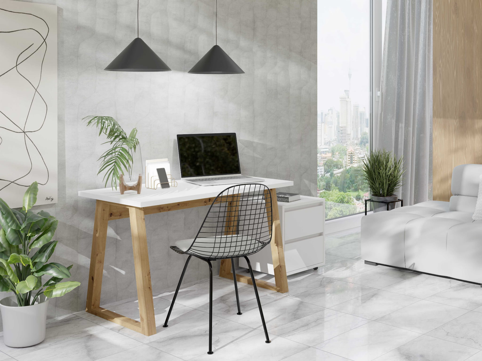 Jednym z kluczowych elementów biurka FIGATE są loftowe nogi, które dodają mu industrialnego i nowoczesnego charakteru. Solidna konstrukcja nóg zapewnia stabilność i wytrzymałość, jednocześnie nadając biurku wyrazisty wygląd, który doskonale pasuje do wnętrz w stylu loftowym, industrialnym oraz nowoczesnym.