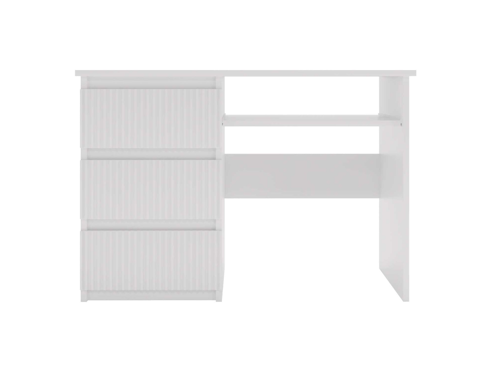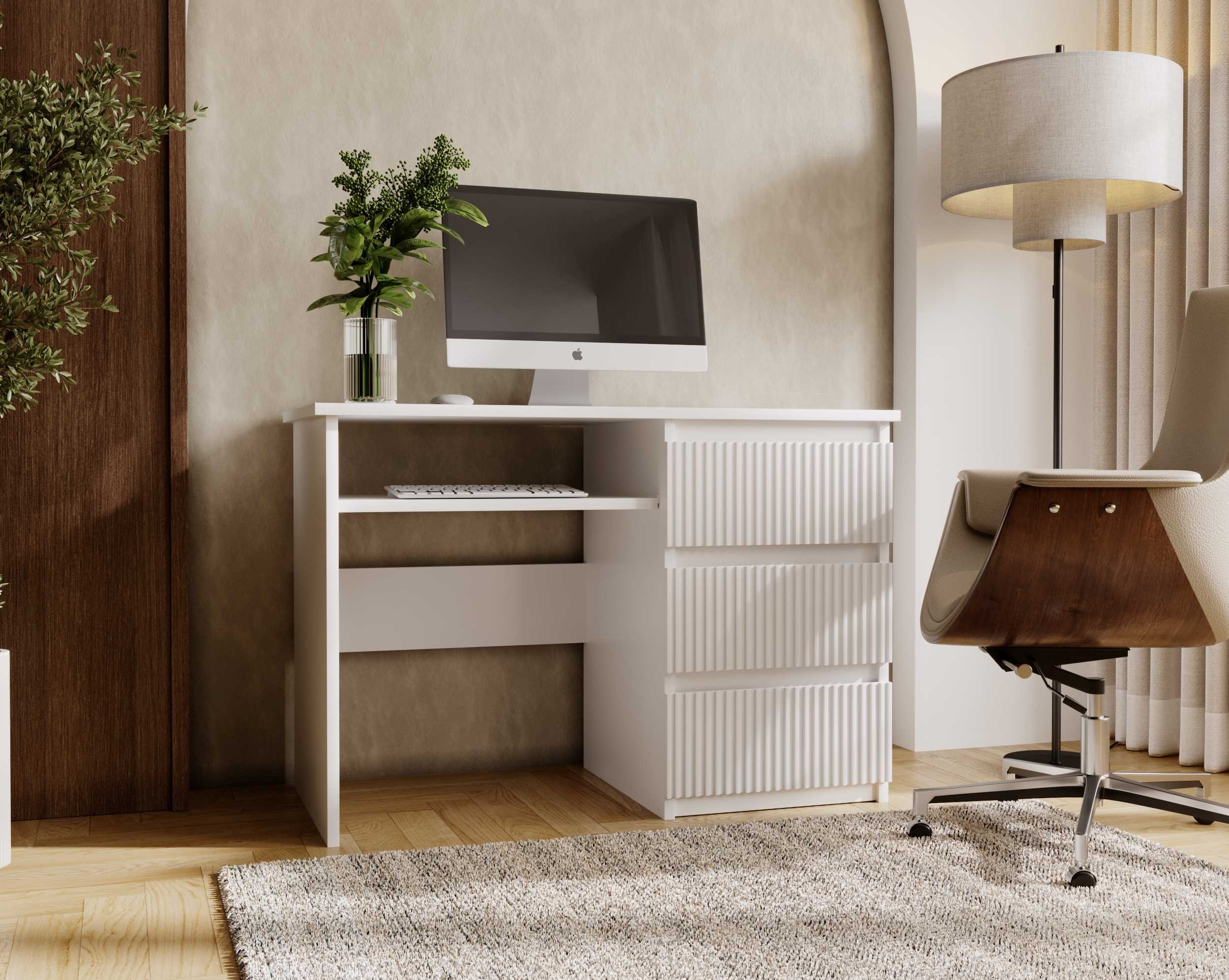 Biurko FLEXI DESK Szerokość 110 cm Białe Prawe Ryflowane Fronty 3-Szuflady Ergonomiczne Nowoczesne