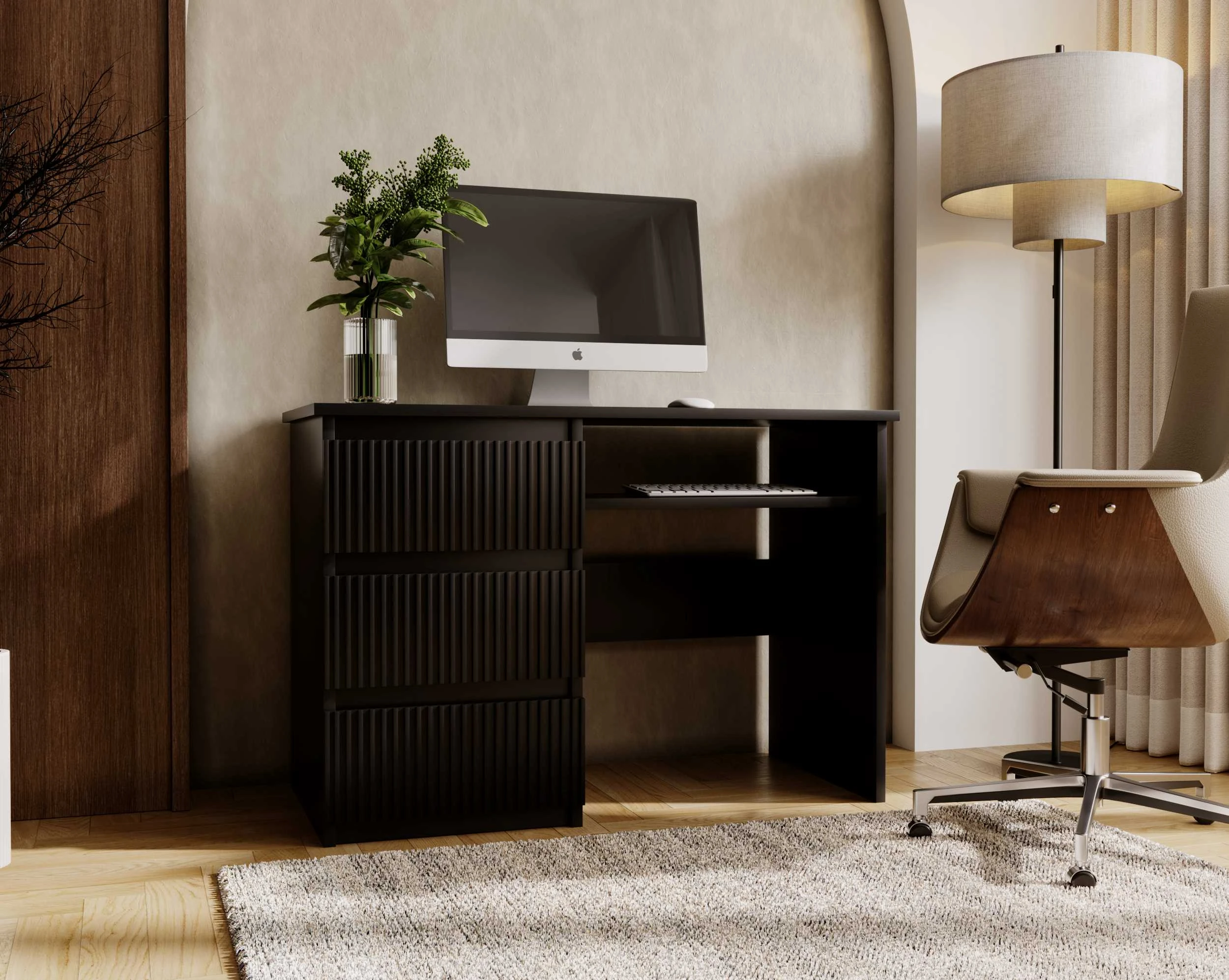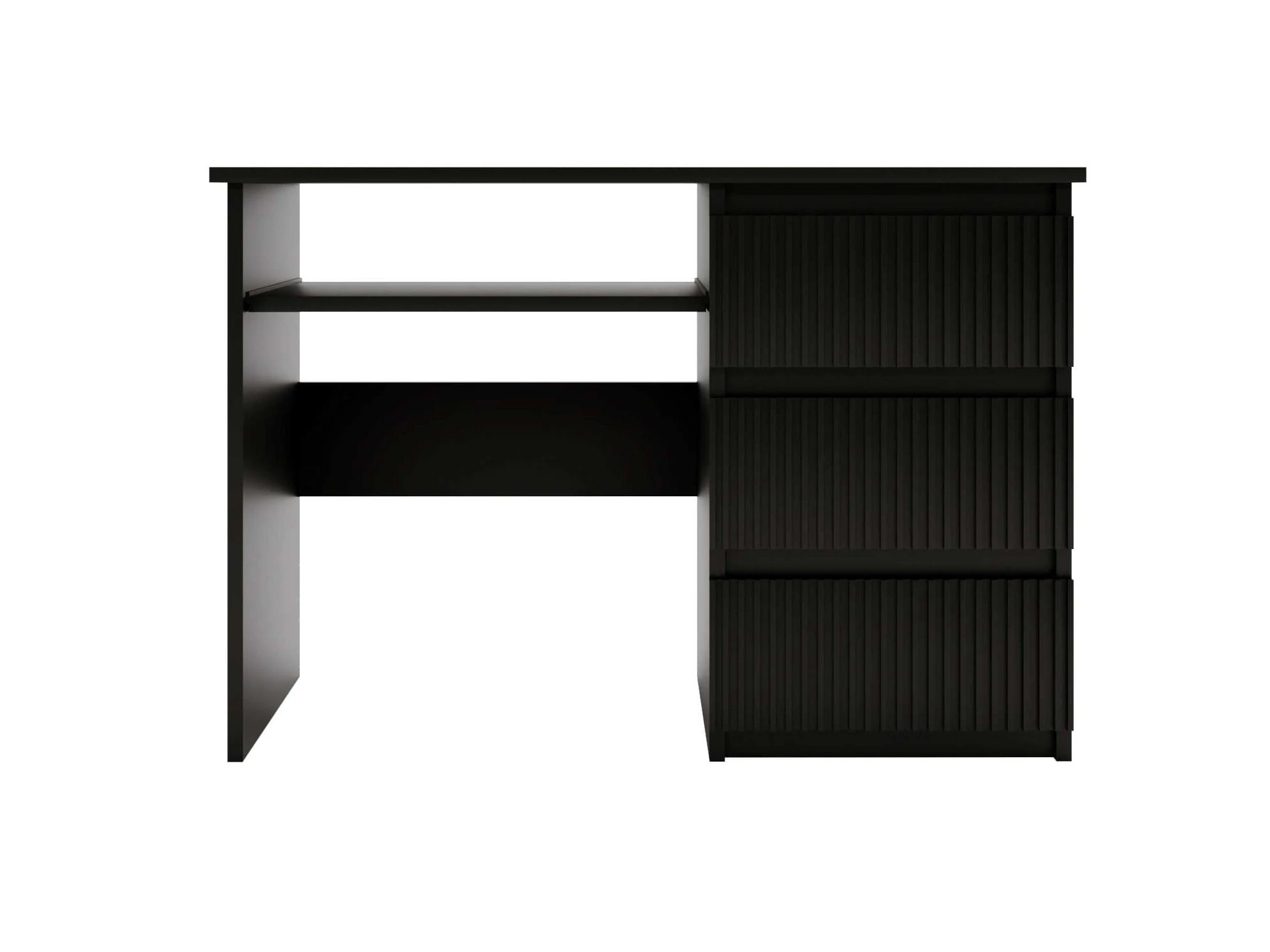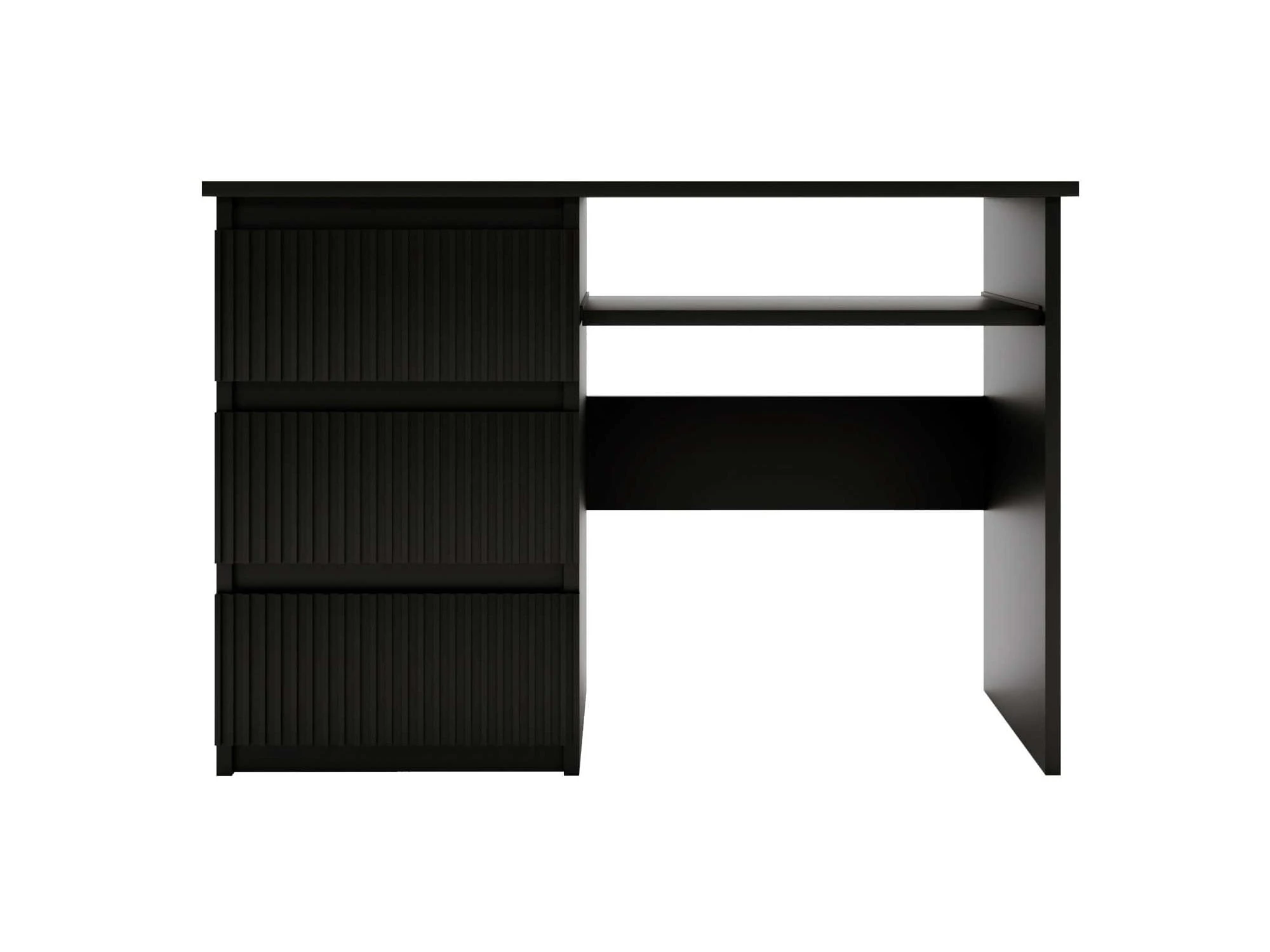 Biurko FLEXI DESK Szerokość 110 cm Czarne Lewe Ryflowane Fronty 3-Szuflady Ergonomiczne Nowoczesne