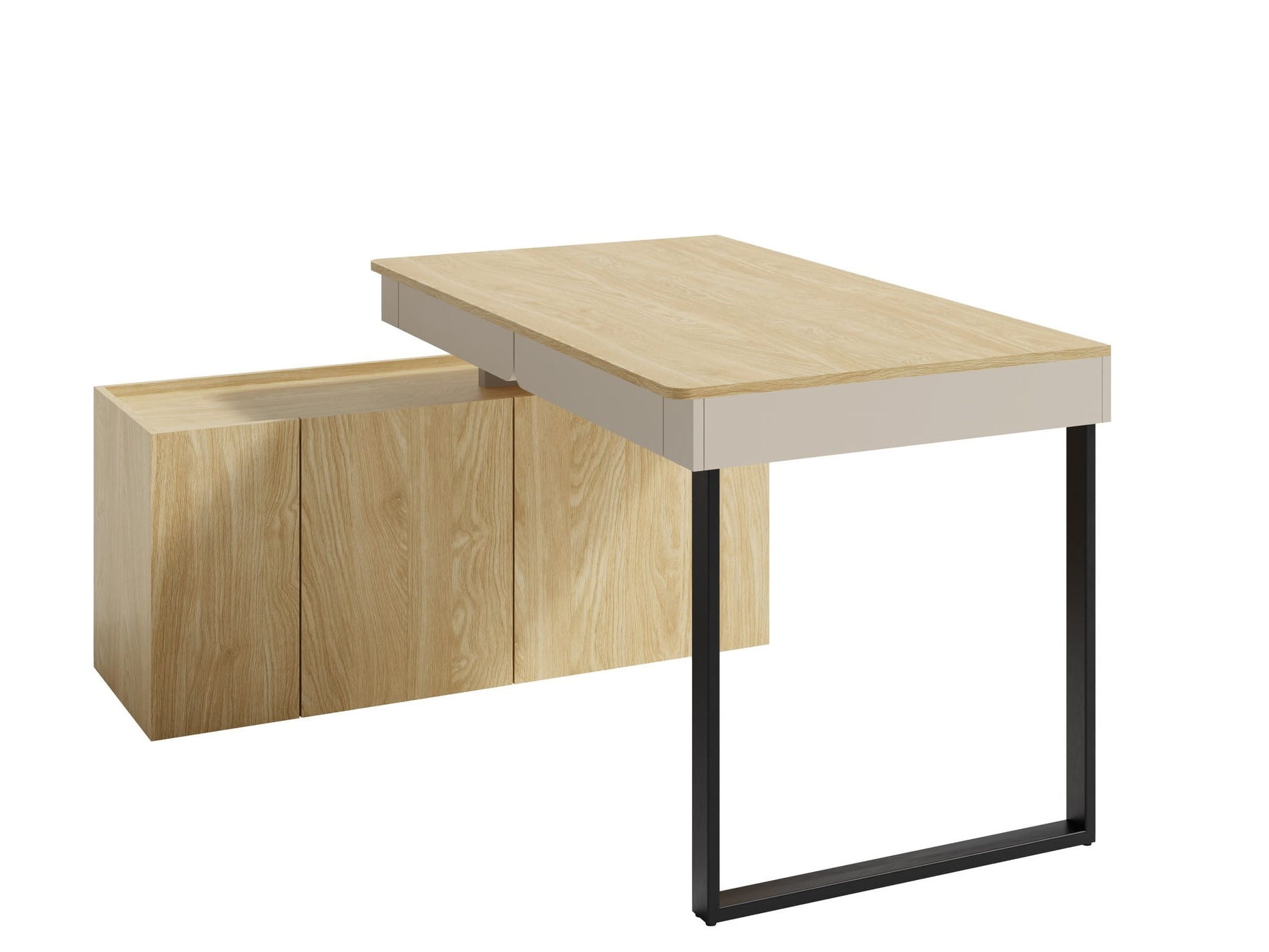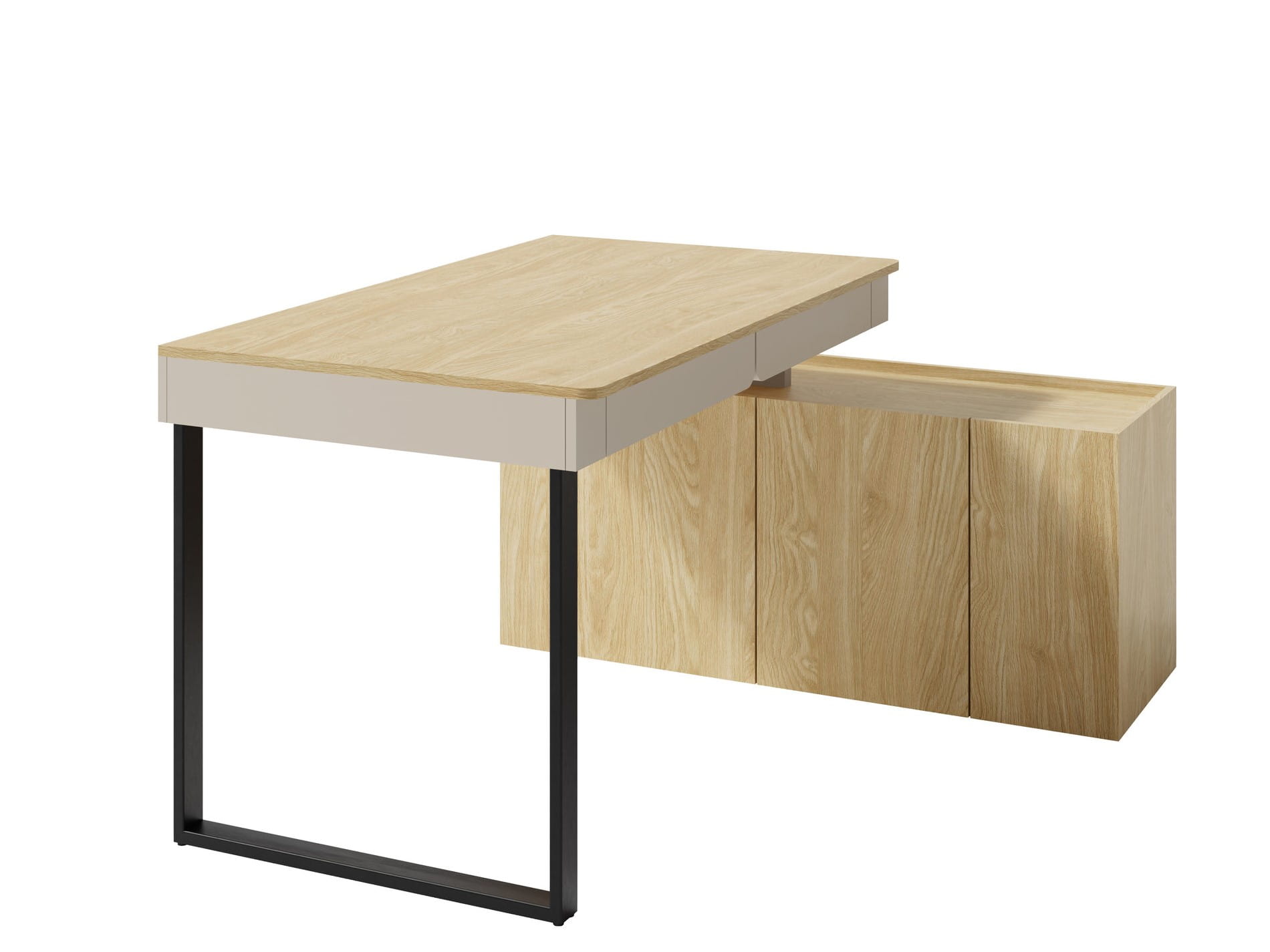 Biurko z Komodą LUCA LC10 Młodzieżowe Beż Piaskowy / Dąb Olejowany 2-Szuflady 3-Szafki Kaszmir Meblar