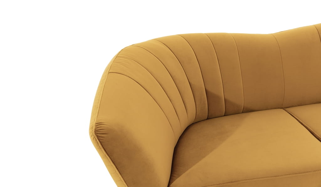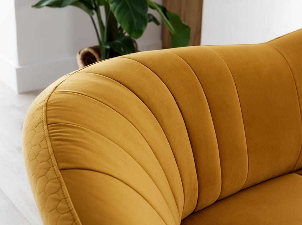 Sofa Vittorio 190 cm wyróżnia się unikalną muszelkową formą i pionowymi przeszyciami, które nadają wnętrzu prestiżowy wygląd. To idealny mebel dla osób szukających elegancji, który natychmiast staje się główną ozdobą każdego pokoju dziennego.