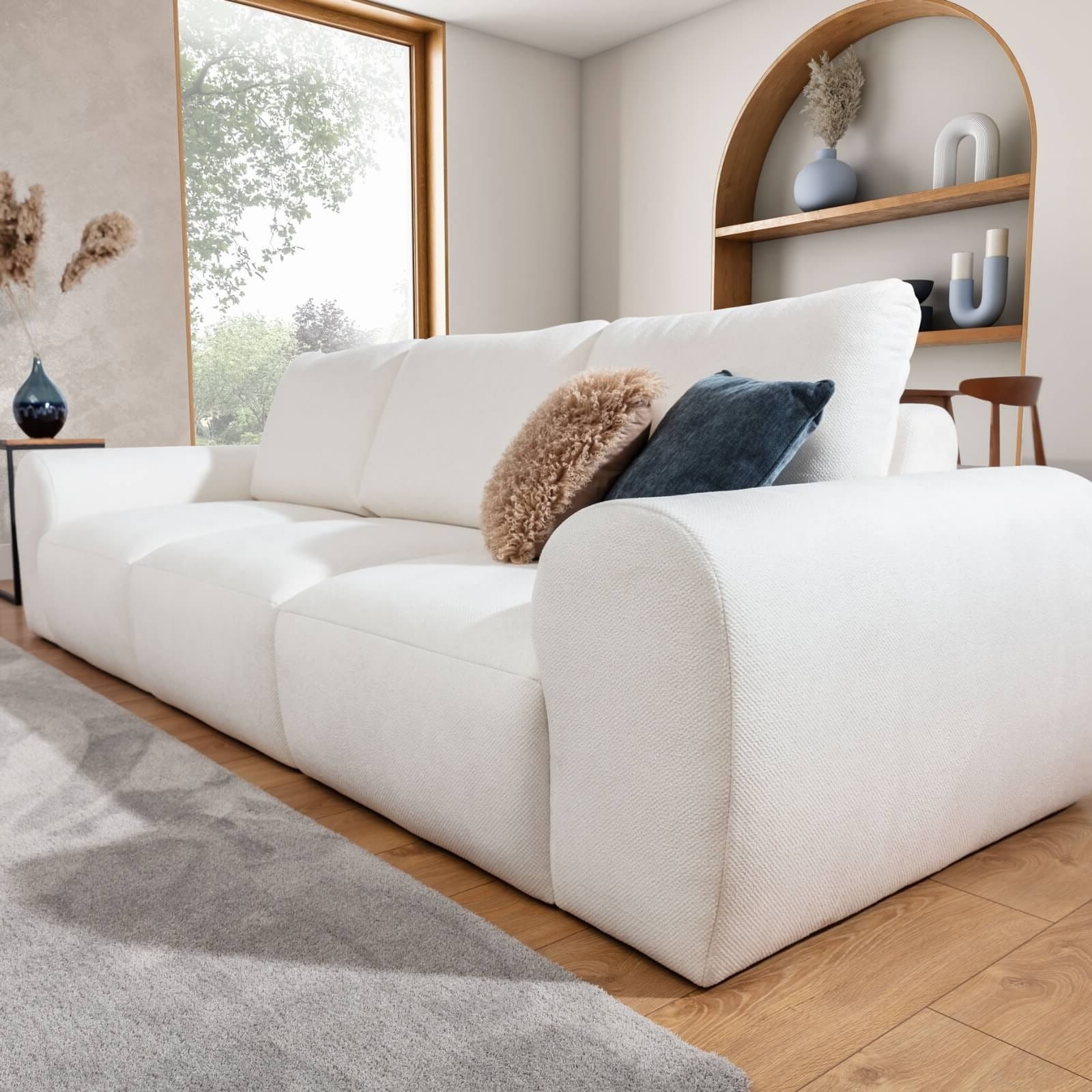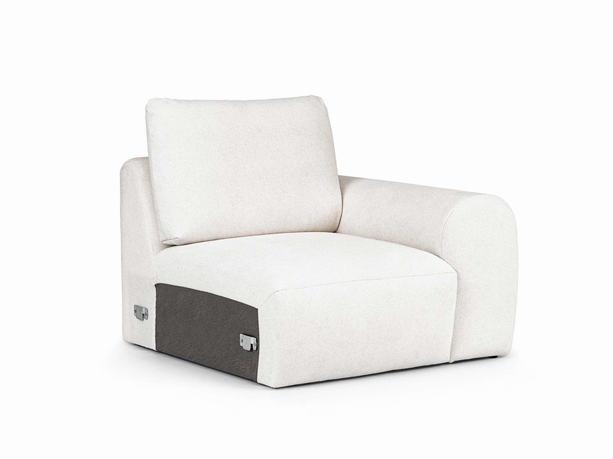 Element 1 BP DIONIZOS to prawy moduł końcowy o szerokości 106 cm, wyznaczający elegancję i granice Twojego narożnika modułowego. Ten kluczowy segment budujący wyróżnia się solidnym, szerokim podłokietnikiem bocznym, który pełni funkcję zarówno praktycznego wsparcia, jak i ważnego akcentu stylistycznego. Geometryczna forma podłokietnika harmonijnie wpisuje się w nowoczesny, wyrafinowany charakter linii DIONIZOS, nadając całej kompozycji meblowej wyraźny i luksusowy rys.