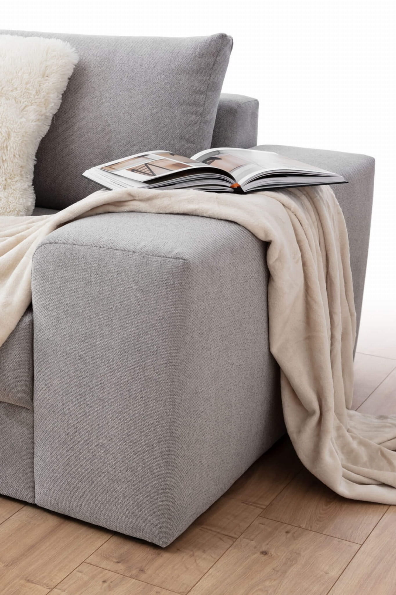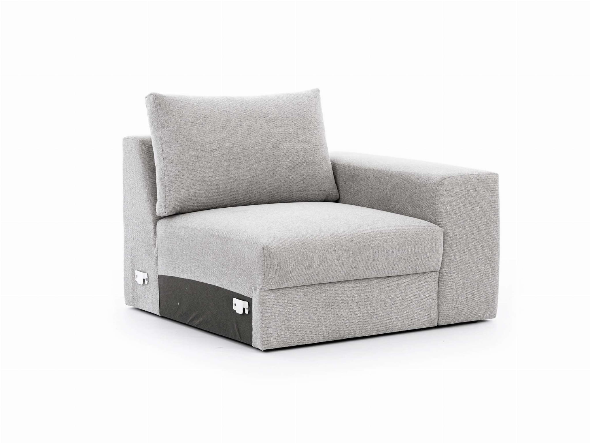 Element 1 BP HERMES o szerokości 105 cm to funkcjonalne domknięcie narożnika, które dzięki zintegrowanemu podłokietnikowi wyznacza nową strefę domowego komfortu. Szeroki bok modułu służy jako wygodne podparcie dla ramion, nadając całej konstrukcji luksusowego i przytulnego charakteru.