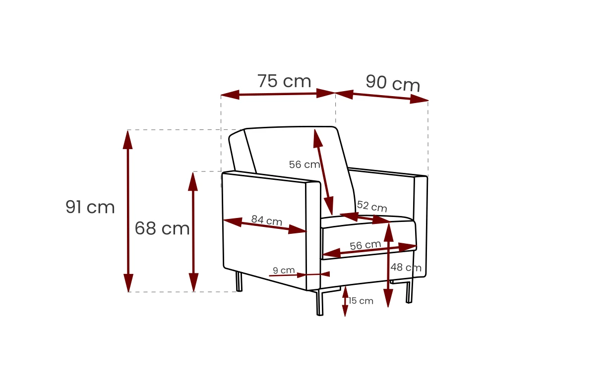 to mebel wypoczynkowy o prostej, minimalistycznej formie, który świetnie sprawdzi się w nowoczesnym, skandynawskim bądź loftowym wnętrzu. Osadzony na wysokich (15 cm) metalowych nóżkach, do wyboru w kolorze czarnym oraz chromowym.