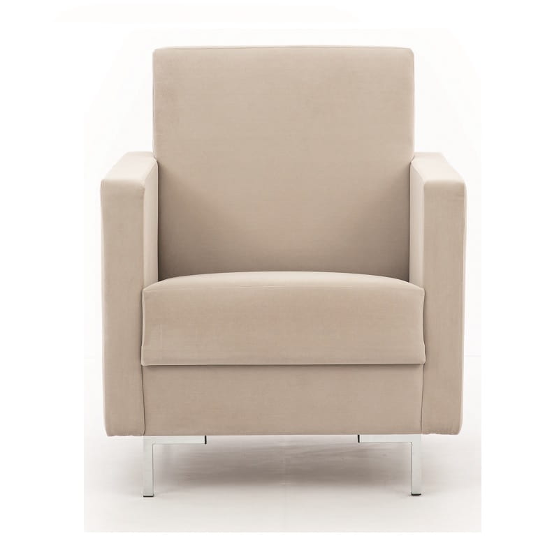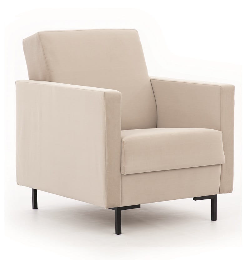 to mebel wypoczynkowy o prostej, minimalistycznej formie, który świetnie sprawdzi się w nowoczesnym, skandynawskim bądź loftowym wnętrzu. Osadzony na wysokich (15 cm) metalowych nóżkach, do wyboru w kolorze czarnym oraz chromowym.