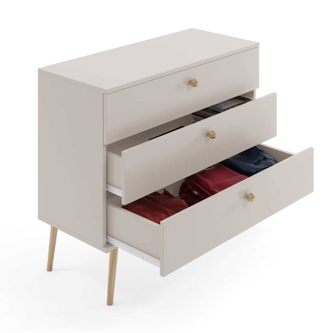 Wnętrze komody kryje 3 szuflady, które pozwolą na właściwą organizację swoich rzeczy.