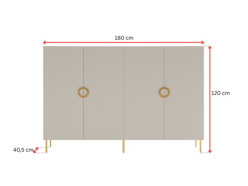 Komoda BELLUNA B09 Szerokość 180 cm Kaszmir Czterodrzwiowa Styl Glamour Do Sypialni