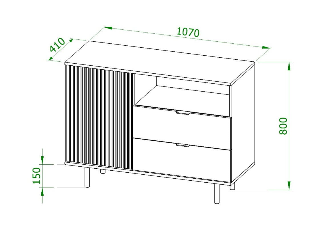 Komoda Do Salonu Czarna 107 cm Szuflady Drzwiczki Front Ryflowany NUBIA NB-01