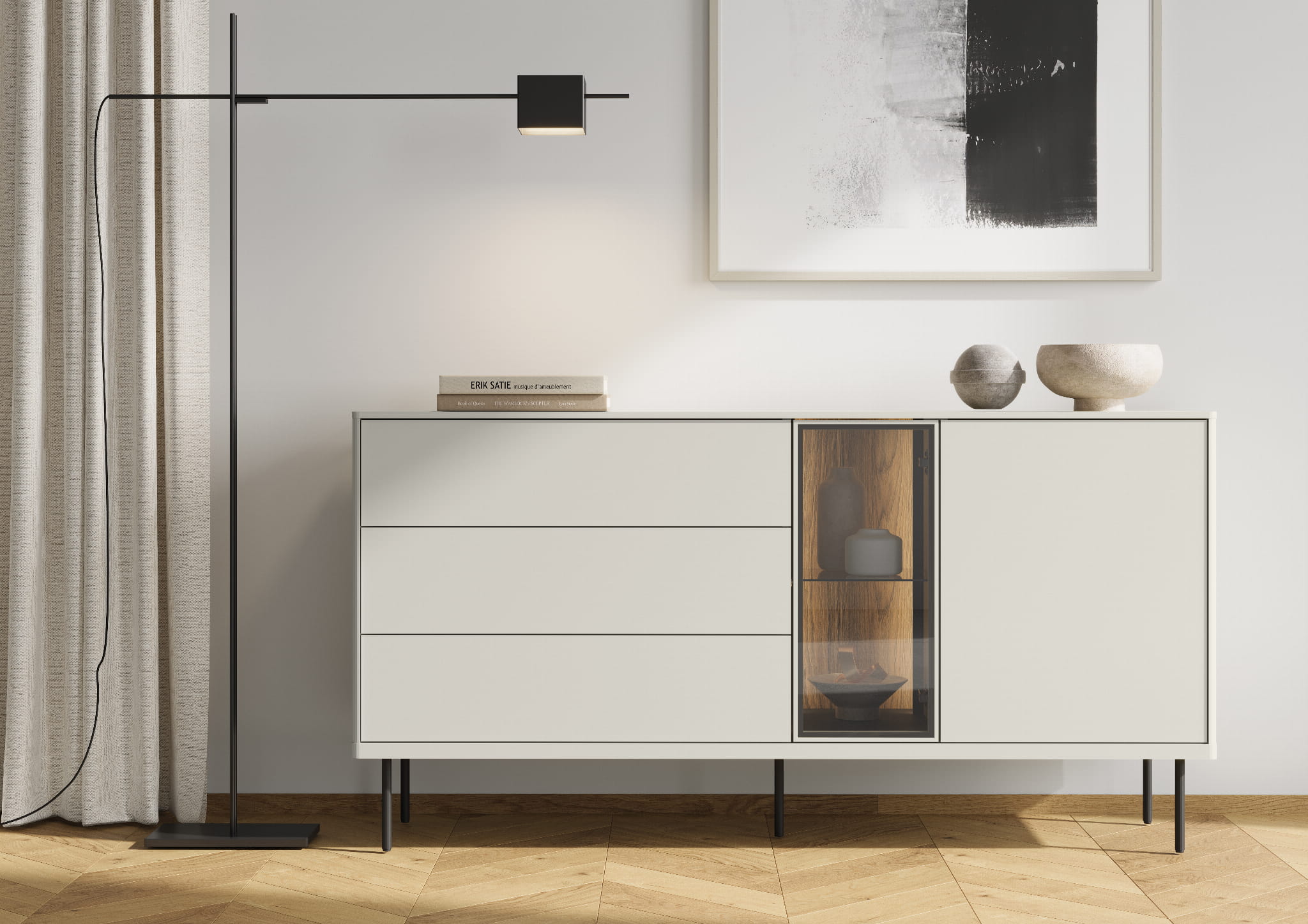 Komody EPIRO wyposażone są w subtelne metalowe nóżki, które nadają meblom wizualnej lekkości. Jednocześnie zapewniają one stabilność, co czyni te meble nie tylko pięknymi, ale i solidnymi. Komody z kolekcji EPIRO zaprojektowano z myślą o organizacji. Pojemne szuflady oraz głębokie półki pomieszczą wszystko, czego potrzebujesz, od dokumentów, przez tekstylia, aż po ulubione dekoracje.