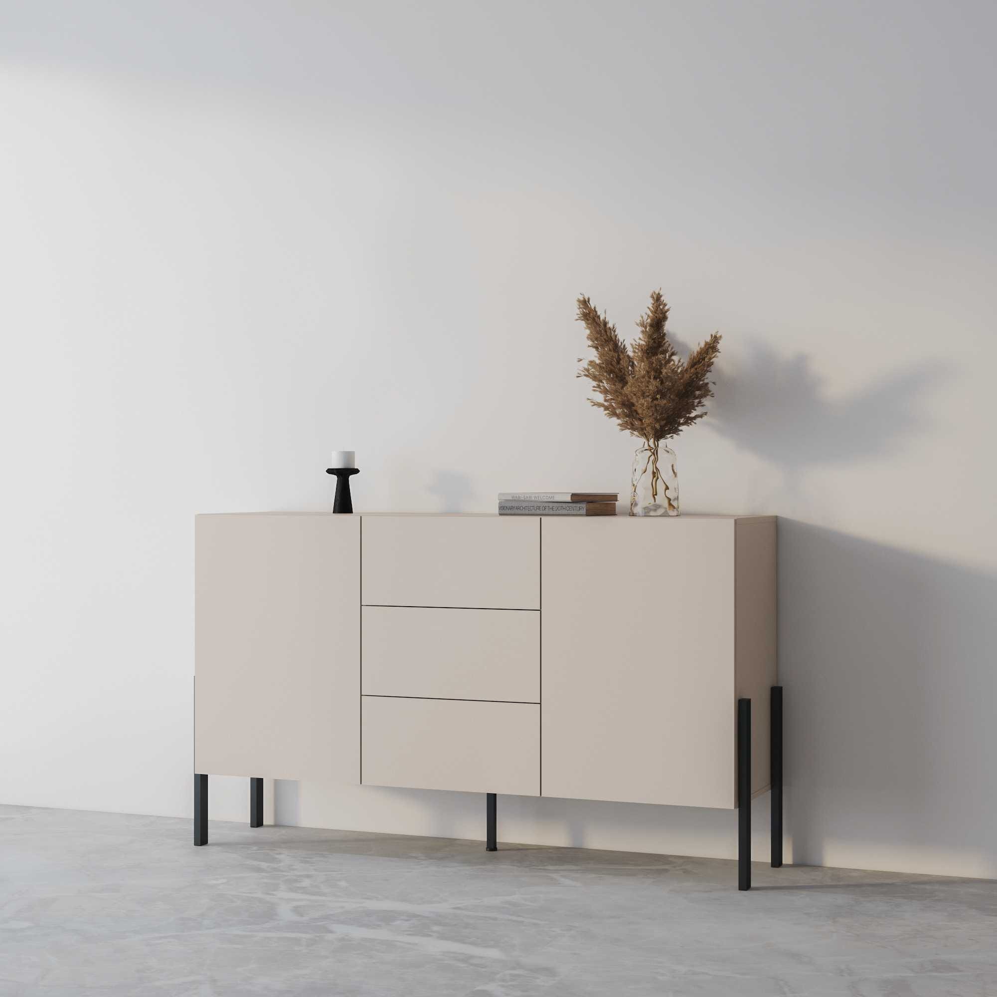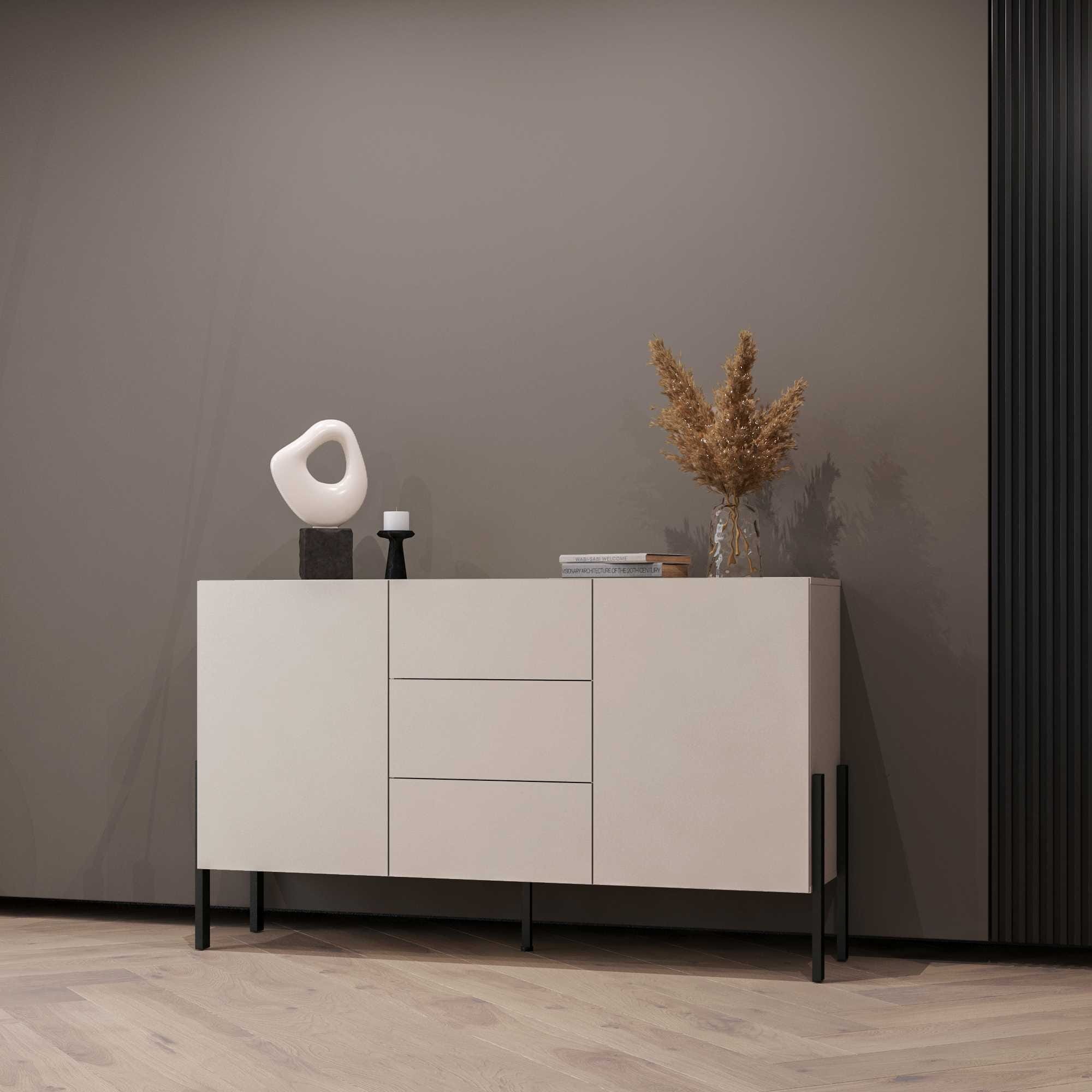 Komoda JUKON Szerokość 154 cm Kaszmir Dwudrzwiowa 3-Szuflady Helvetia Meble 24KSND43