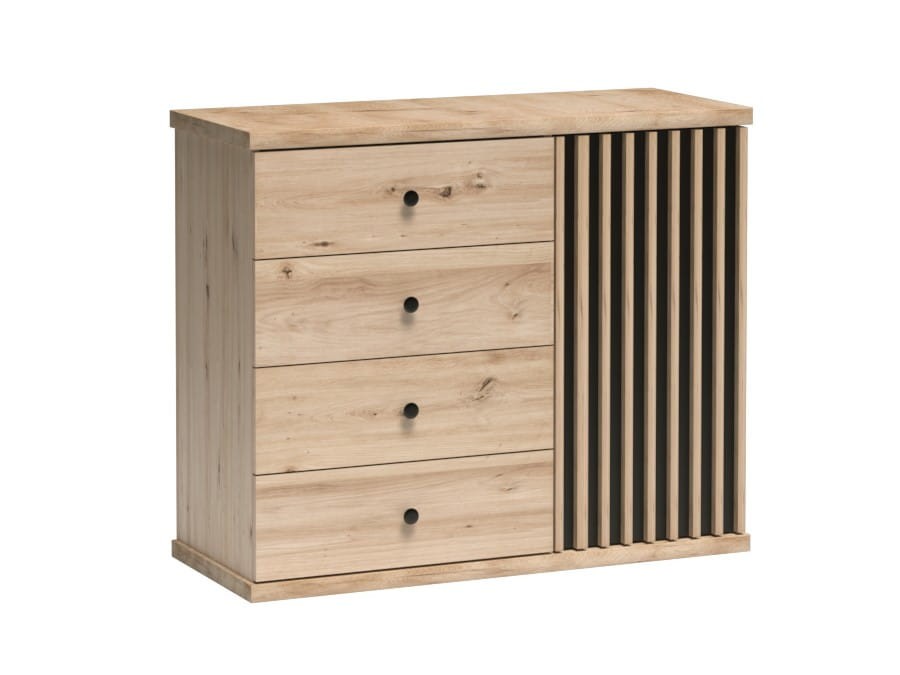 Komoda KALI K-5 4 - Szuflady Szerokość 102 cm Lamele Dąb Artisan LOFT