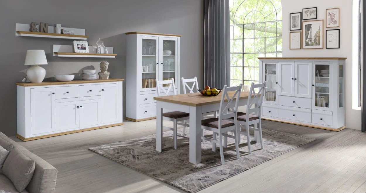 Meble nadają się zarówno do pokoju dziennego, salonu, jadalni, sypialni jak i biura czy gabinetu.