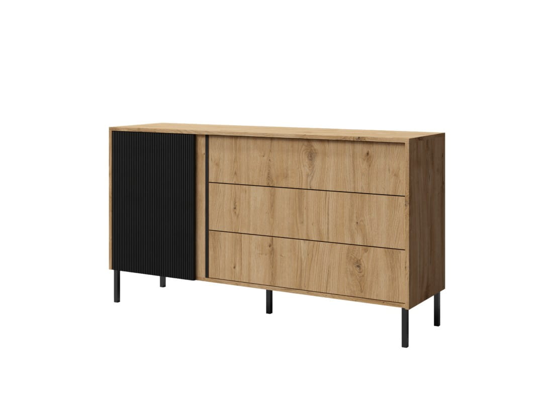 Komoda MIA 3 Szerokość 145 cm Dąb Odwieczny + Czarny 3-Szuflady Styl Loftowy Jurek Meble