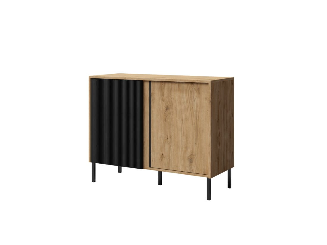 Komoda Niska MIA 4 Szerokość 100 cm Dąb Odwieczny + Czarny Dwudrzwiowa Styl Loftowy Jurek Meble