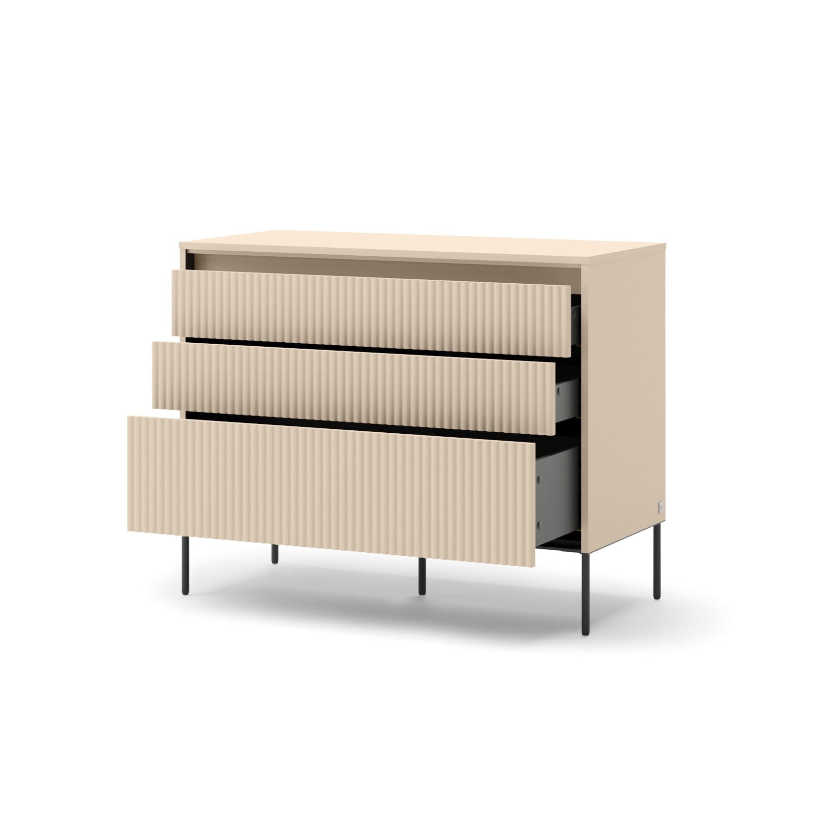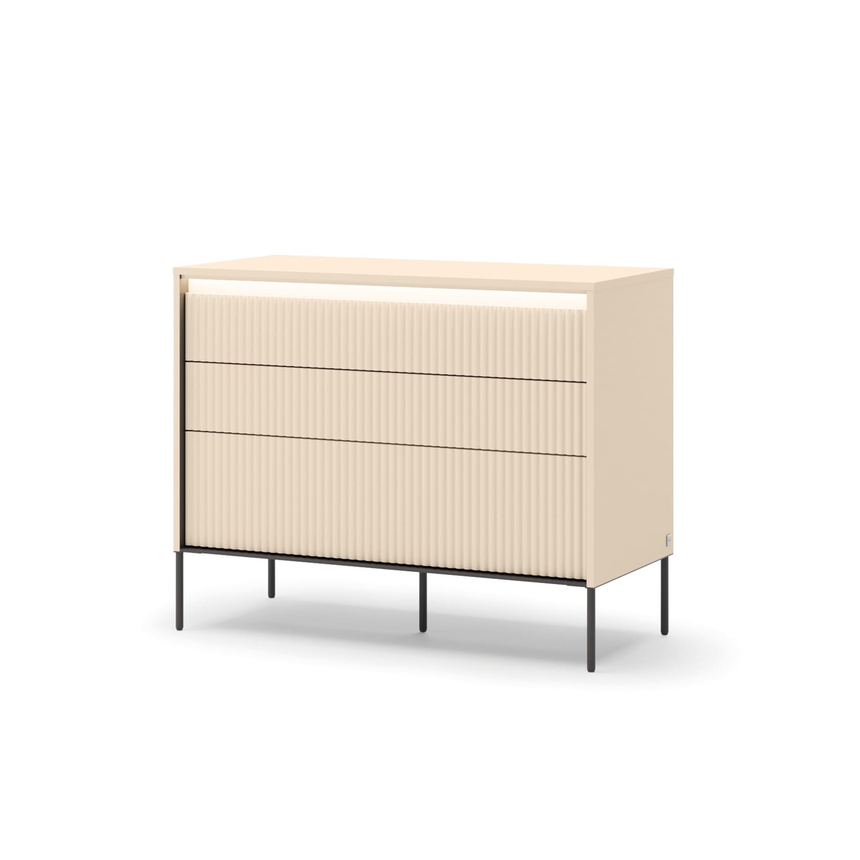 Komoda TREND TS-05 Szerokość 104 cm Beż Piaskowy / Czarny 3-Szuflady Oświetlenie LED Ryflowany Front Sypialnia TS5BPC