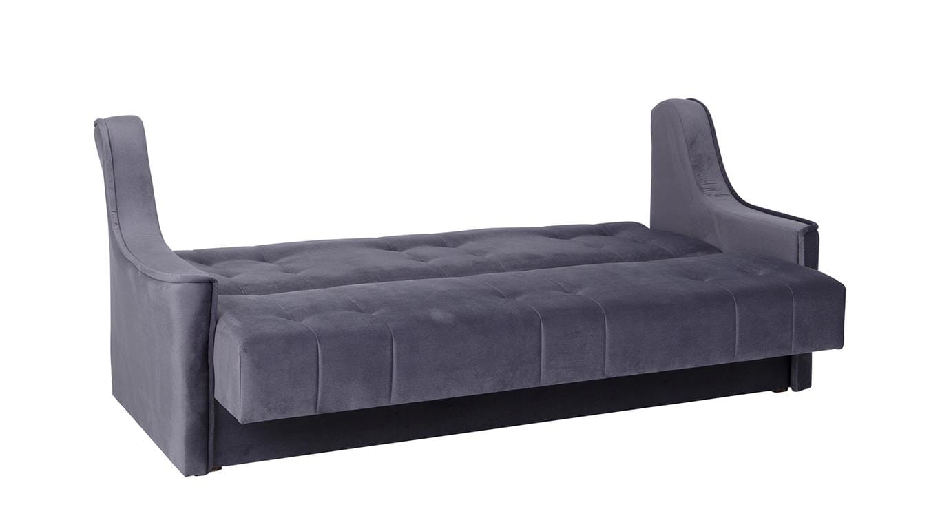 Kanapa Niagara posiada funkcję spania i pojemnik na pościel - miejsce na zapasową pościel, koce i drobiazgi.