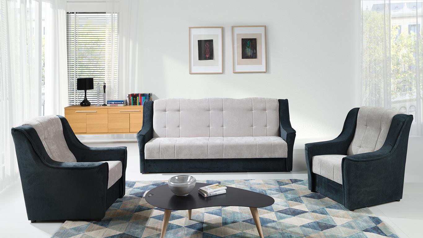 Komplet Wypoczynkowy Do Salonu NIAGARA Wersalka Fotel Szary