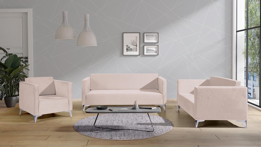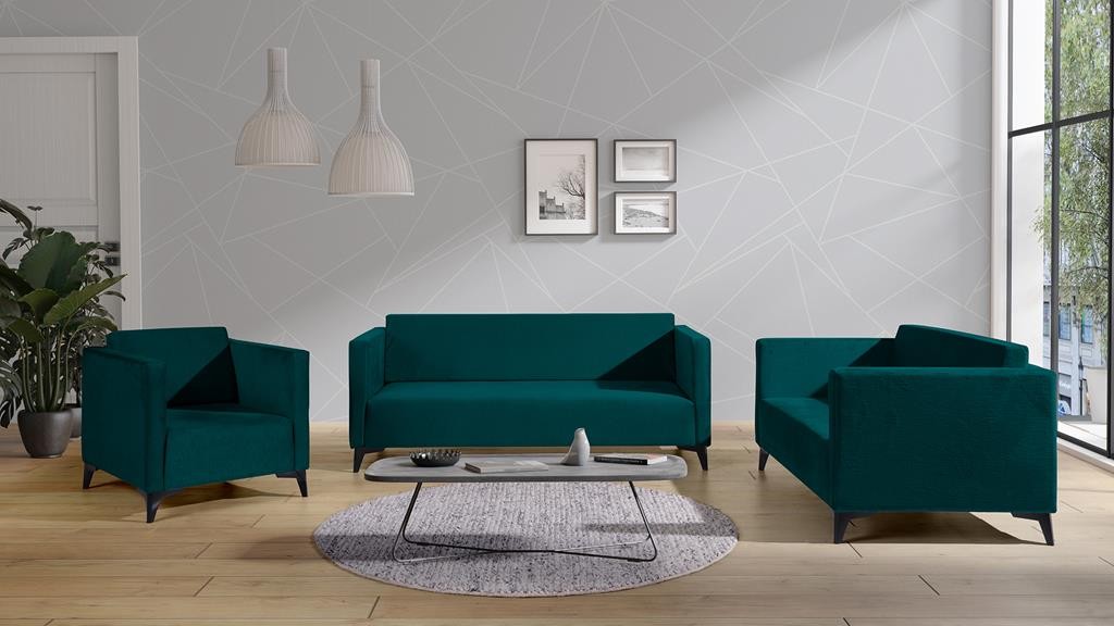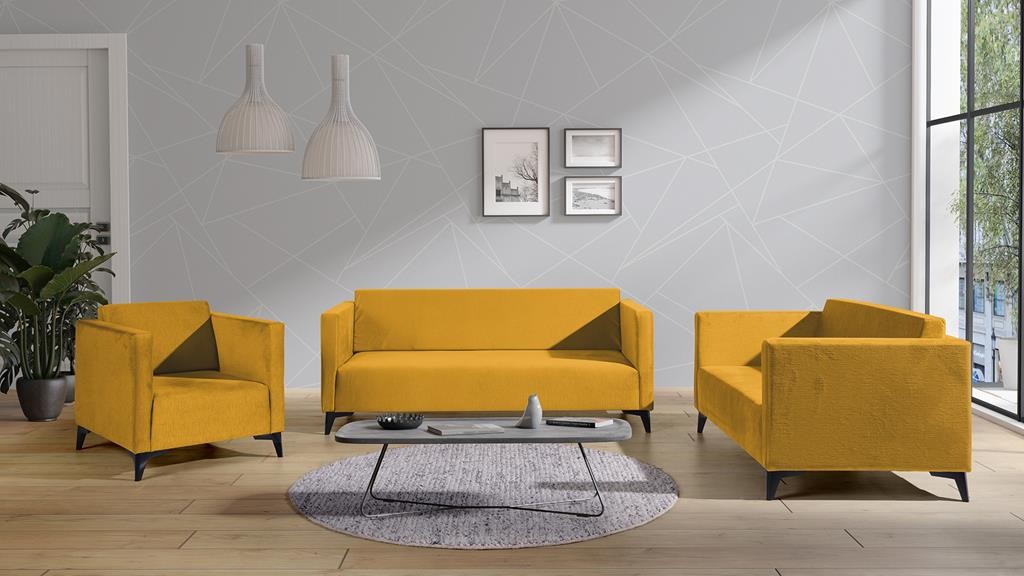 Kanapa 3-osobowa, kanapa 2-osobowa i fotel to przyjazny zestaw do odpoczynku w: domu, lobby hotelowym, firmowym holu.