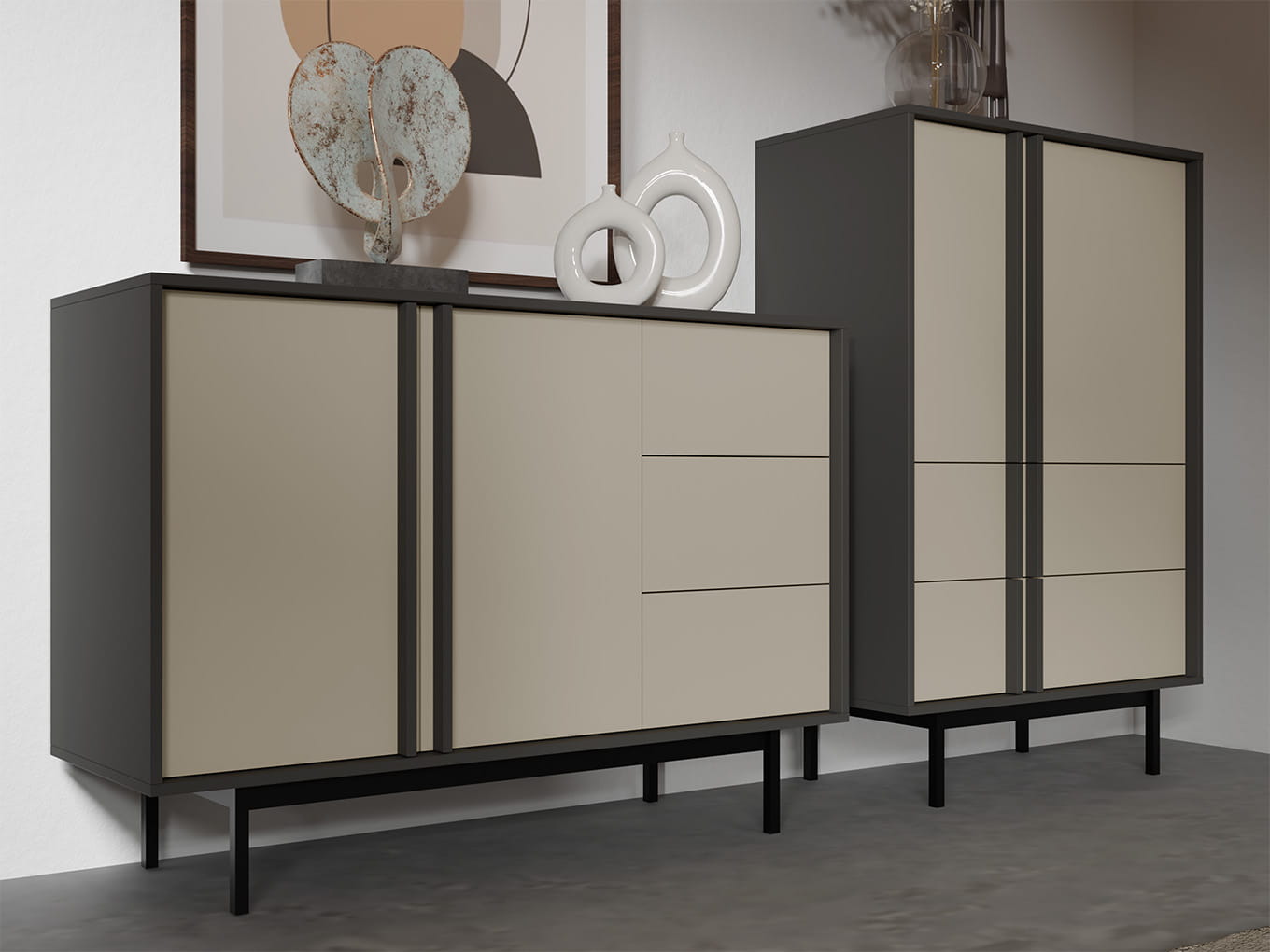 Konsola ALSY 11 Szerokość 123 cm Antracyt / Beż Jasny 3-Szuflady Nowoczesna Toaletka Do Salonu