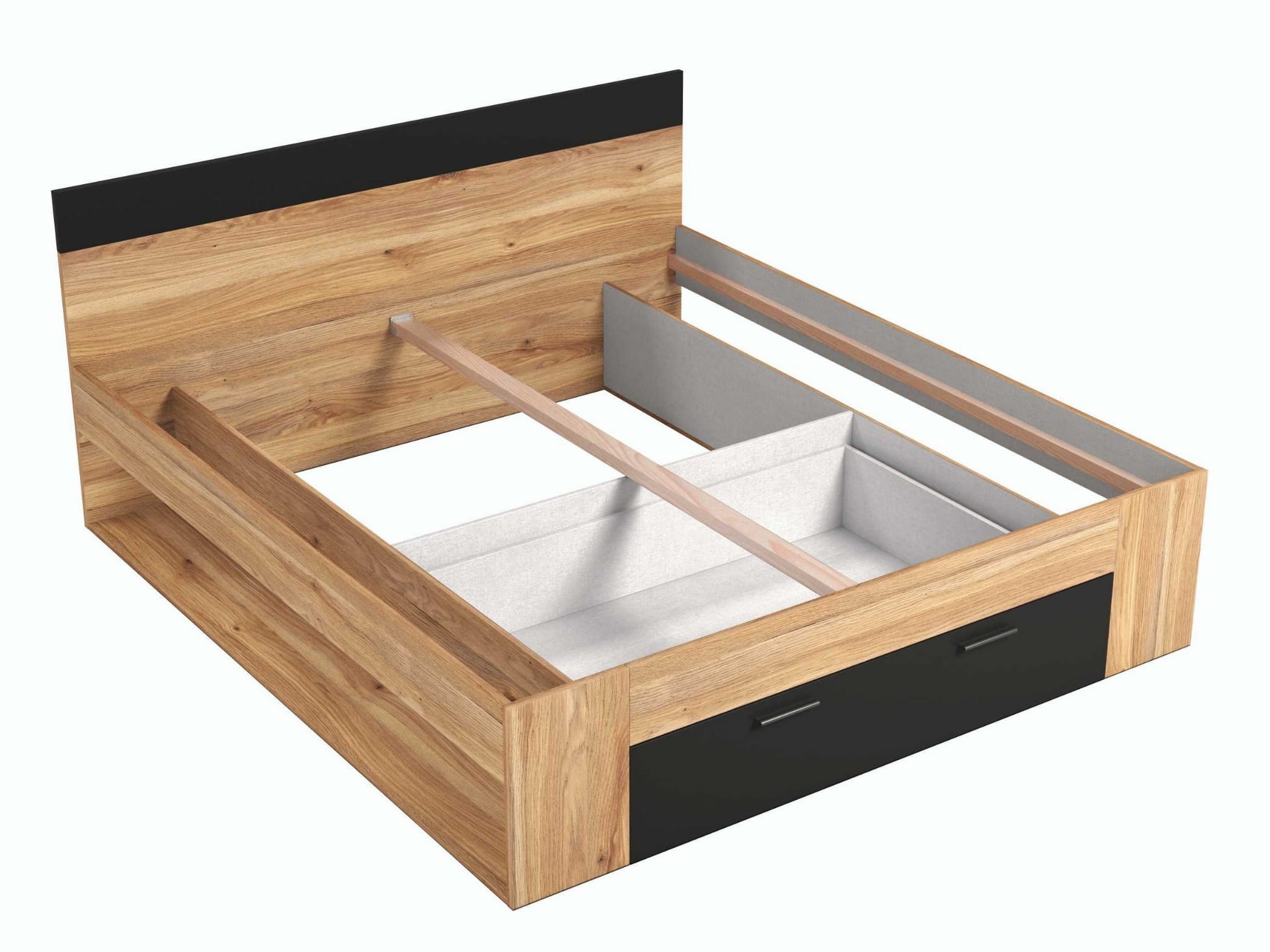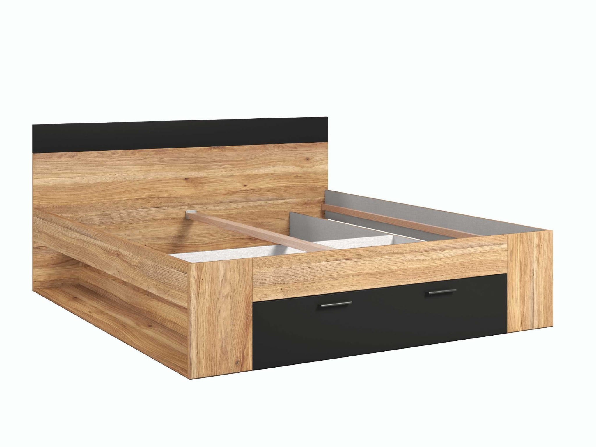 Łóżko BETA Dąb Mauvella z Czernią Powierzchnia Spania 180 x 200 cm Do Sypialni 22MW1692