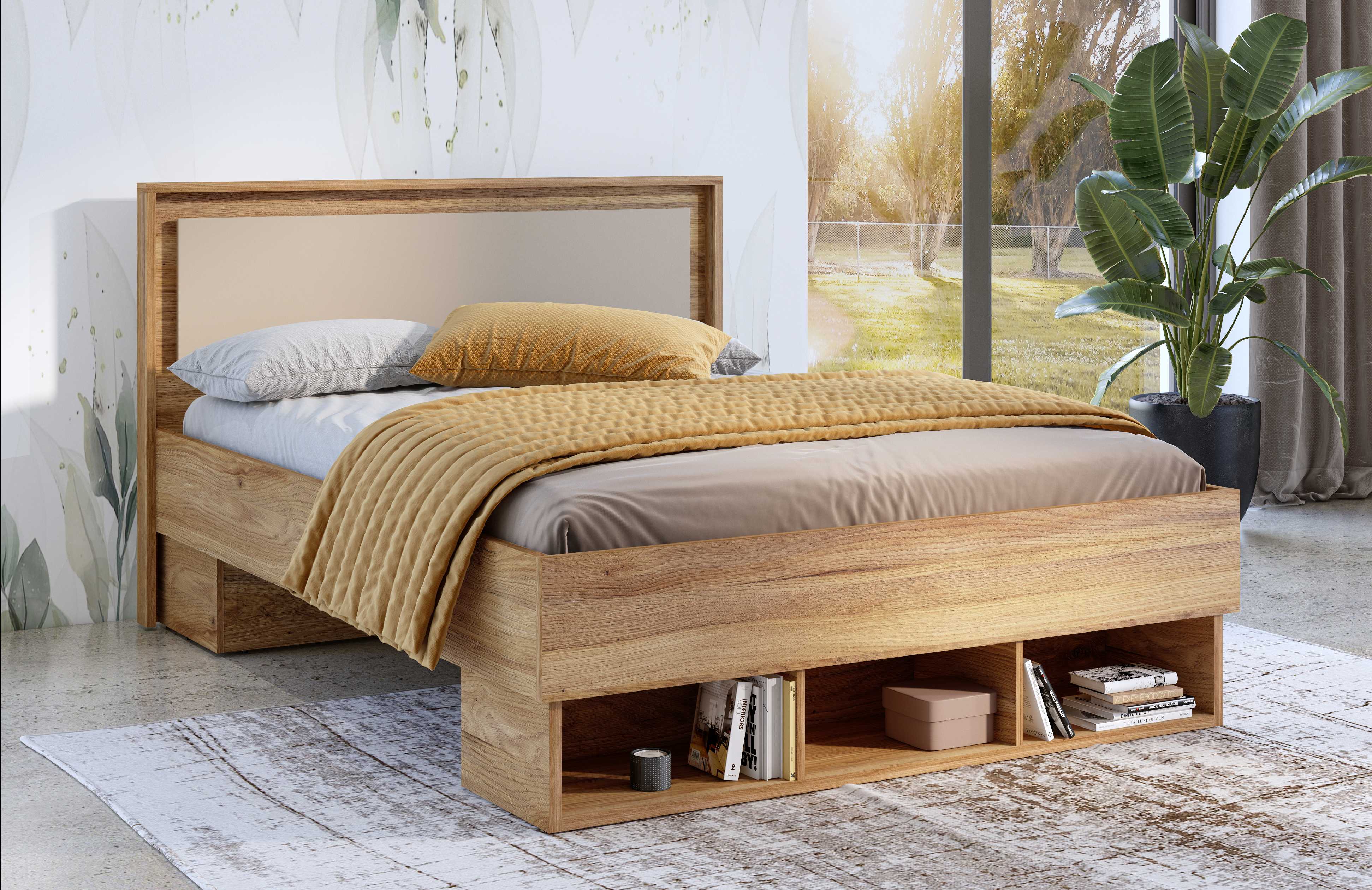 Łóżko IMPRESSIO 140 x 200 cm Dąb Mauvella / Congo Drewniane Do Sypialni Helvetia Meble 24MCNJ30