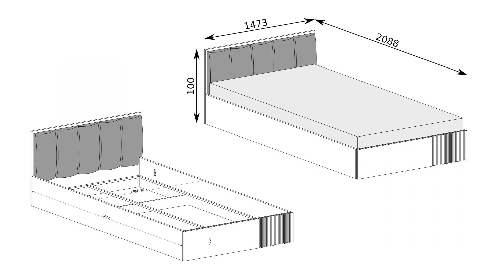 Zagłowie zdobią czarne, tapicerowane płyty.