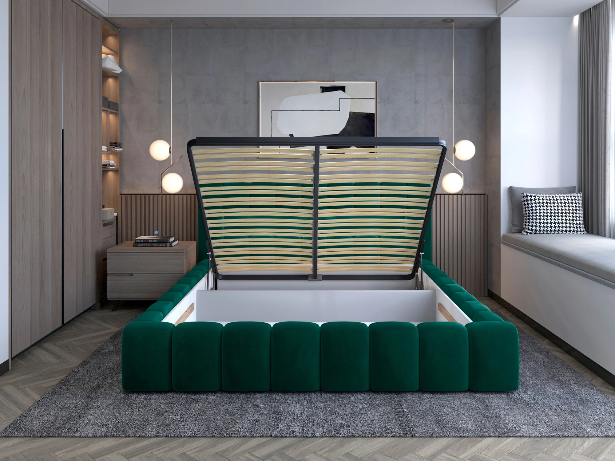 Łóżko LAMICA wyposażono w dwa pojemne schowki na pościel – idealne na przechowywanie kołder, poduszek, koców czy sezonowej odzieży. To praktyczne rozwiązanie, które pozwoli zachować porządek i estetykę w sypialni.
