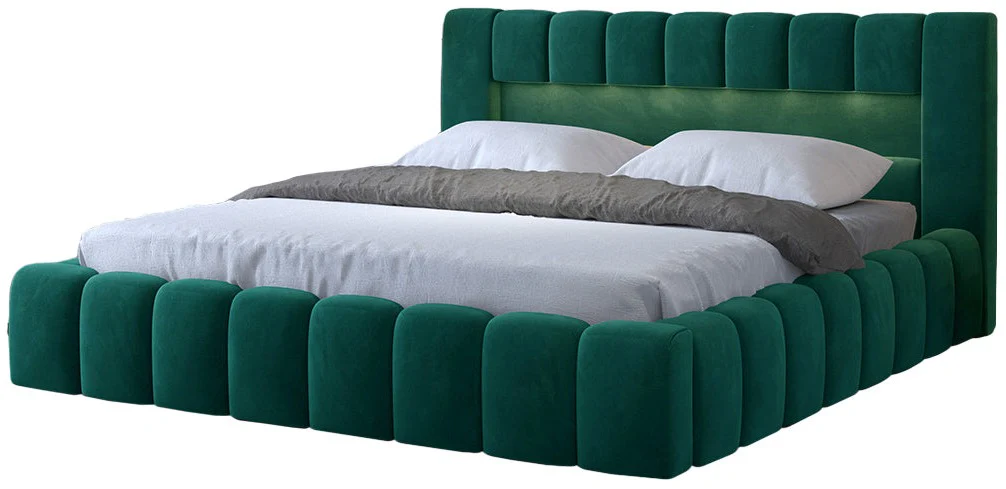 Łóżko LAMICA 180 x 200 Tkanina Monolith 37 Zielone Oświetlenie LED Stelaż Pojemnik Na Pościel