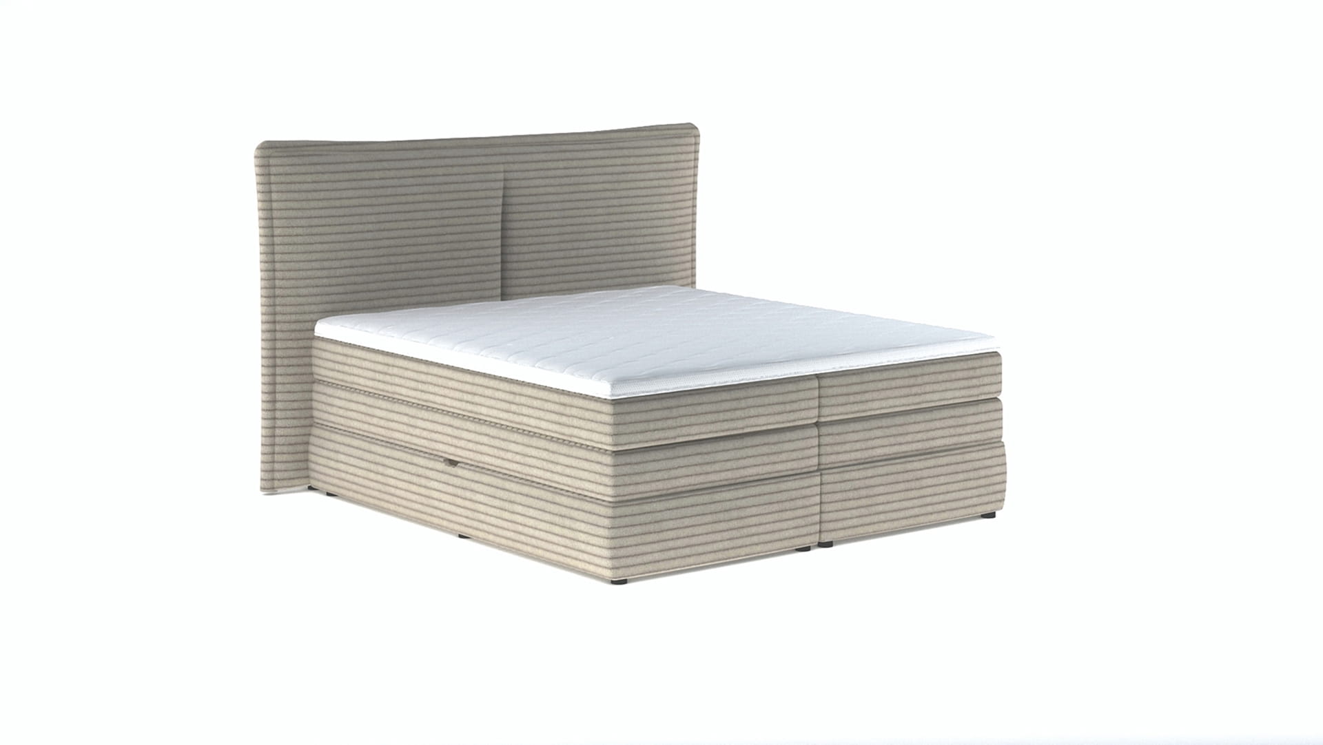 Łóżko o prostym zagłówku z pionowym, pojedynczym przeszyciem po środku. Dwa pojemniki na pościel to dodatkowe miejsce do przechowywania kocy, czy poduszek. Łóżko zostało wyposażone w materac bonellowy na dole oraz kieszeniowy 7-strefowy u góry. Do wyboru są 3 rodzaje szerokość.