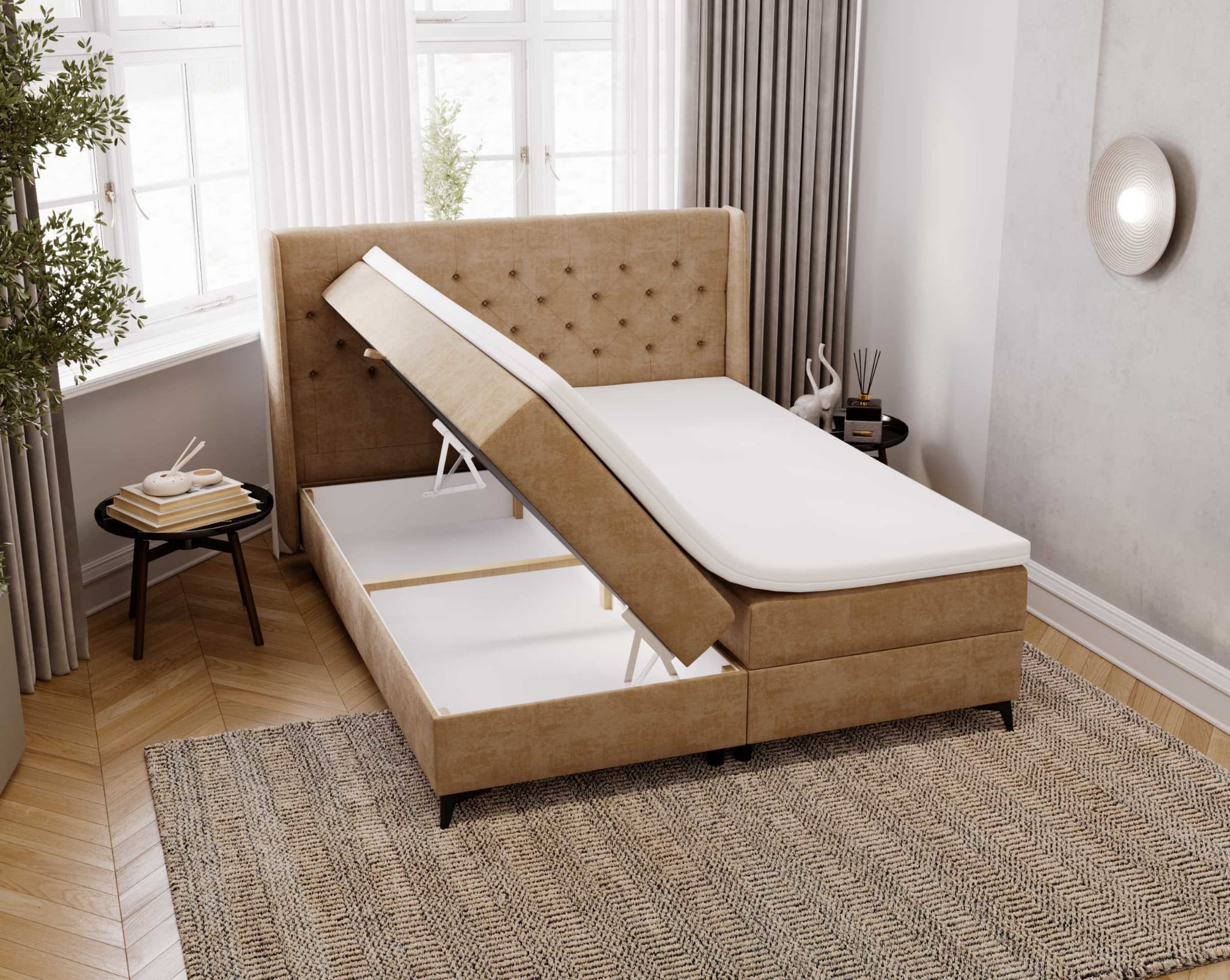 Dzięki zastosowaniu automatycznego sprężynowego mechanizmu, otwieranie pojemników na pościel staje się przyjemne i bezproblemowe, co dodatkowo ułatwia korzystanie z funkcjonalności łóżka.