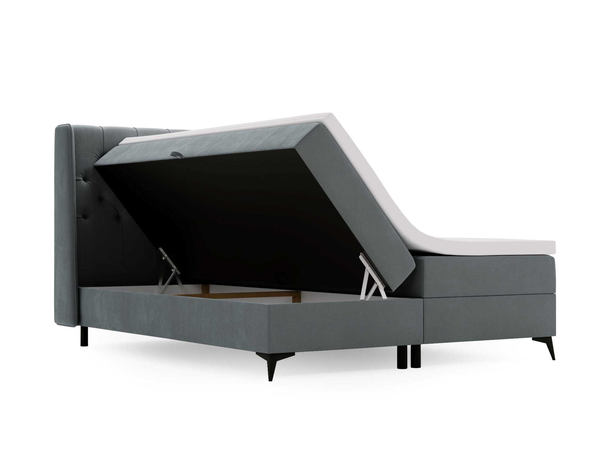 Dzięki zastosowaniu automatycznego sprężynowego mechanizmu, otwieranie pojemników na pościel staje się przyjemne i bezproblemowe, co dodatkowo ułatwia korzystanie z funkcjonalności łóżka.