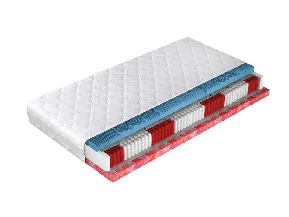 Eco Marin to materac sprężynowy o ciekawej budowie, dzięki połączeniu profilowanej pianki termoelastycznej z pianką wysokoelastyczną.
