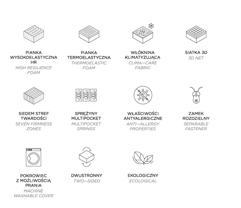 Dzięki zastosowaniu 7 strefowej sprężyny multipocketowej, materac jest bardzo elastyczny.