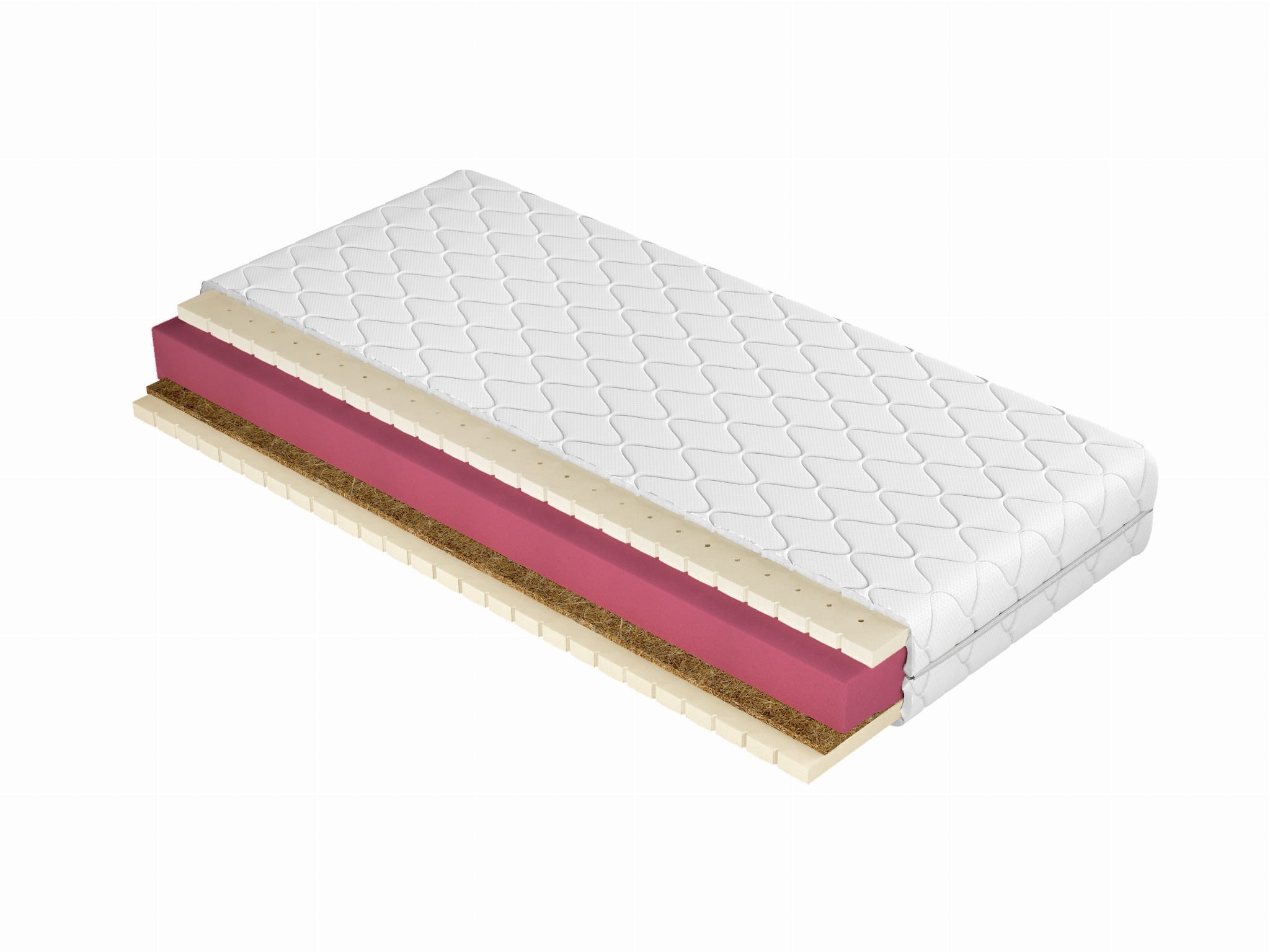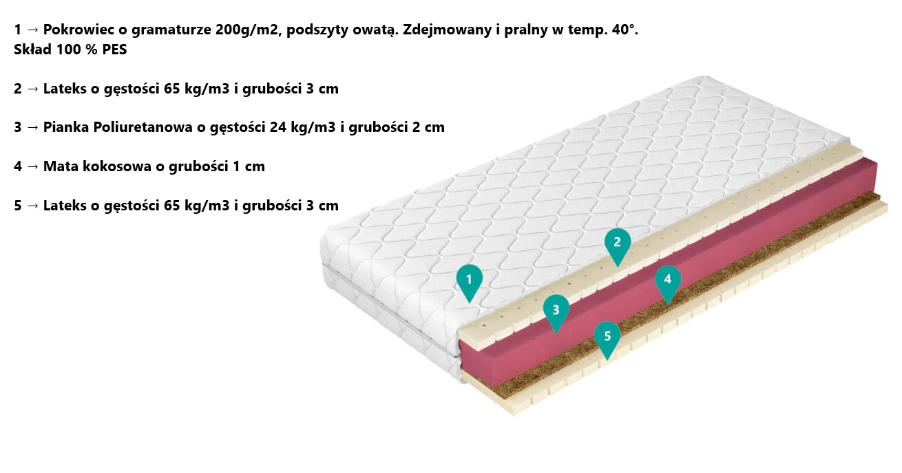 Pomiędzy dwoma warstwami lateksu umieszczono piankę poliuretanową oraz warstwę kokosu aby zwiększyć dodatkowo komfort snu.