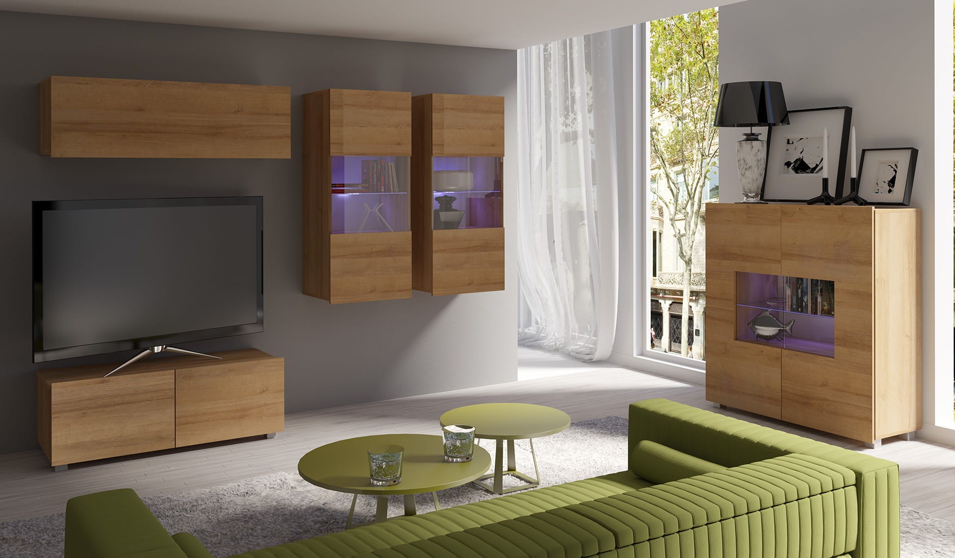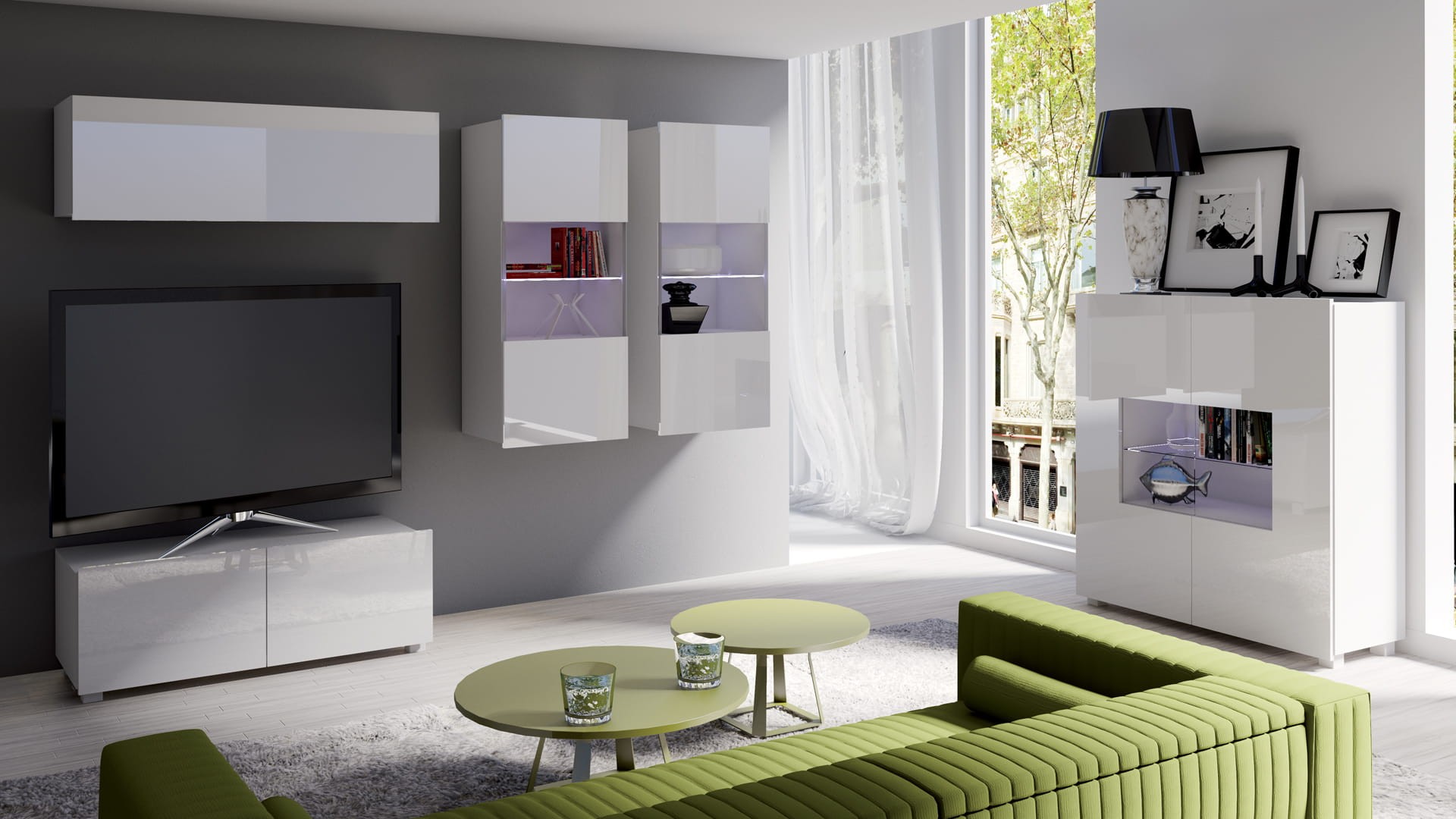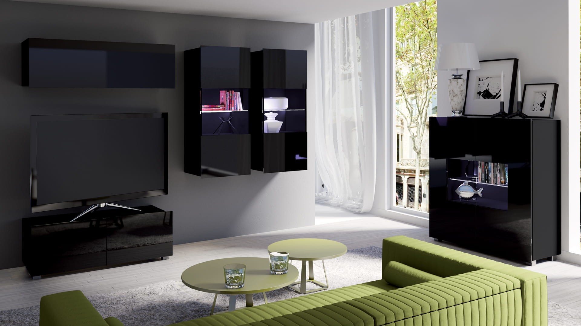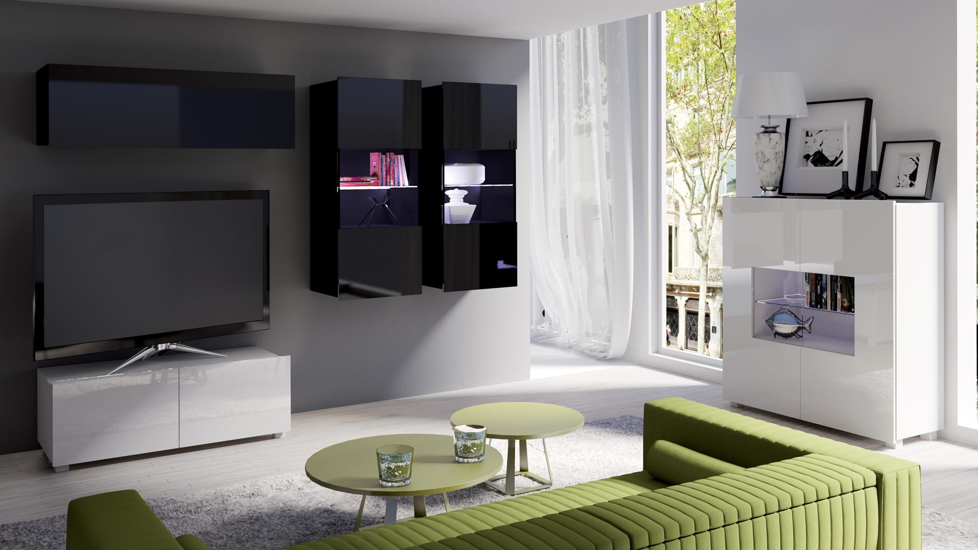 Cechą charakterystyczną prezentowanej kolekcji jest brak uchwytów w szafkach, a także możliwość swobodnego ustawienia meblościanki w zależności od indywidualnych preferencji i potrzeb.