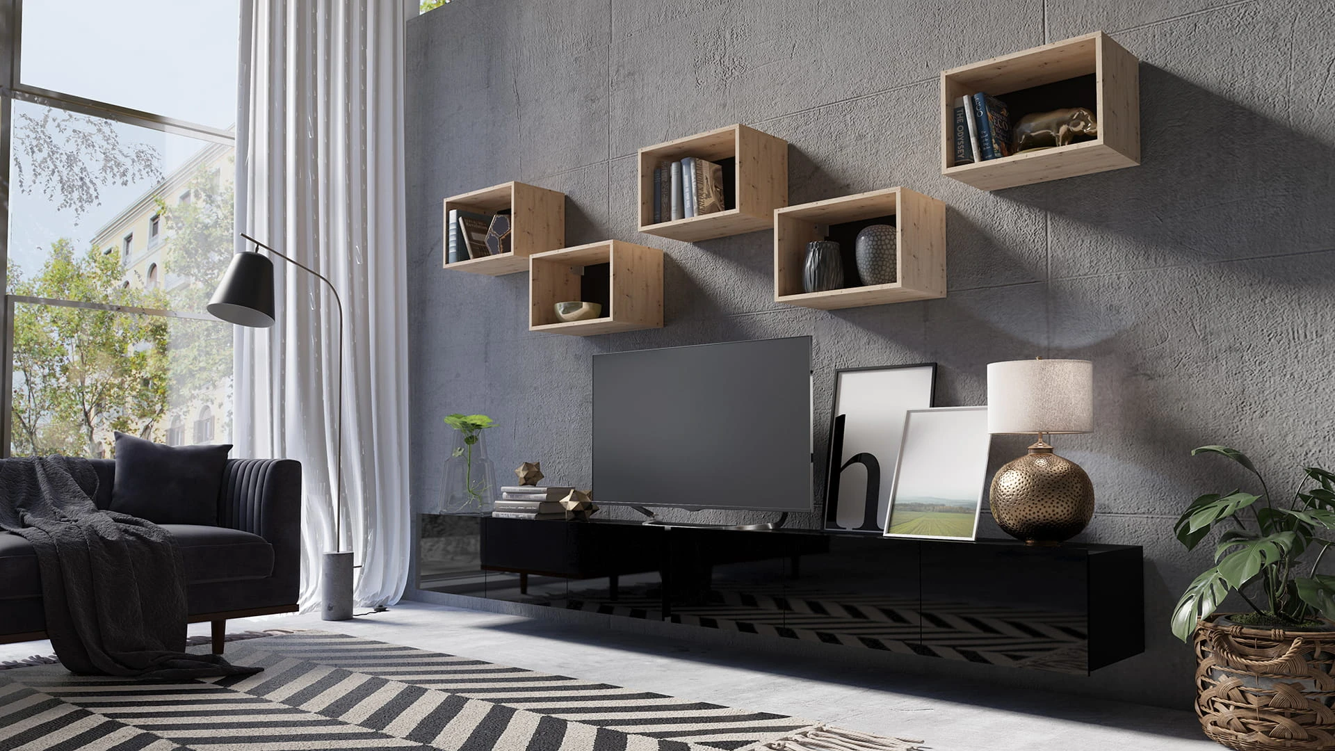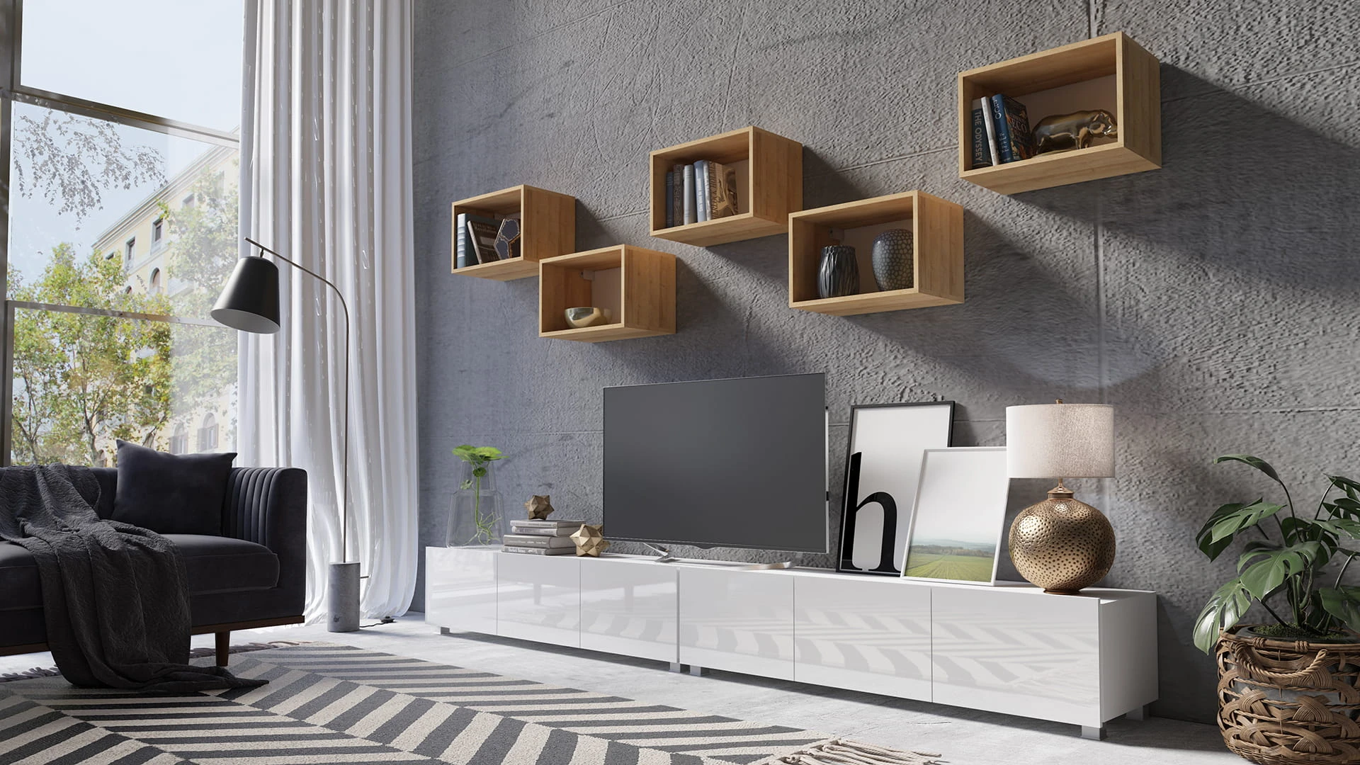 • uniwersalne szafki RTV wiszące lub stojące,