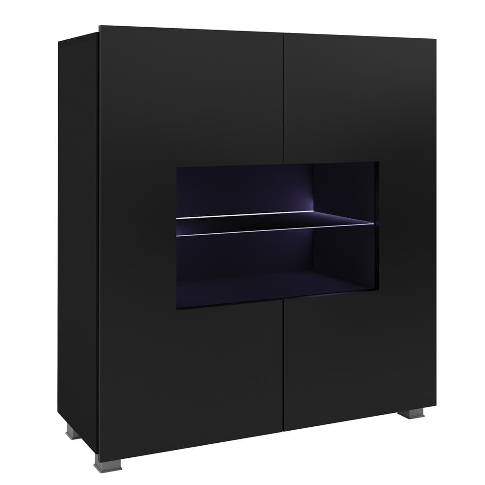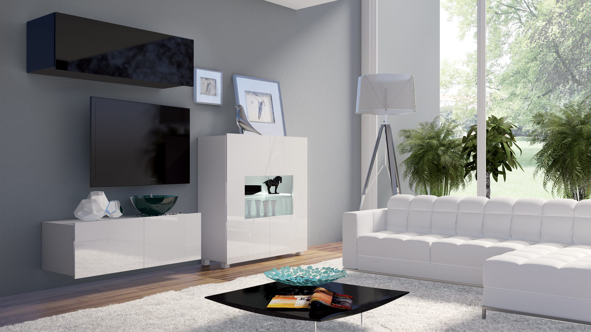 Meblościanka PRESTIŻ 9 RTV 100 cm Czarna Biała Szafki Połysk Witryna LED
