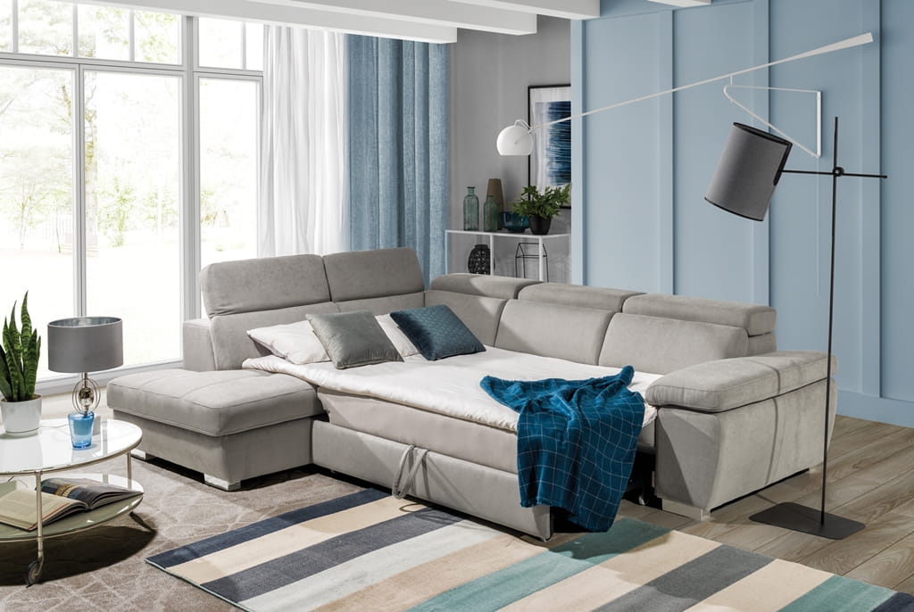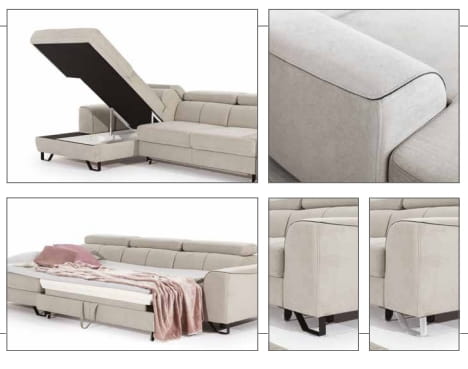 Ten model to niezwykle praktyczny narożnik z funkcją spania, gotowy na każdą sytuację. Dzięki intuicyjnemu mechanizmowi rozkładania, w kilka chwil zamienisz reprezentacyjny salon w wygodną sypialnię dla gości. To inteligentne rozwiązanie 2w1, które pozwala zaoszczędzić miejsce, nie rezygnując z estetyki na najwyższym poziomie.