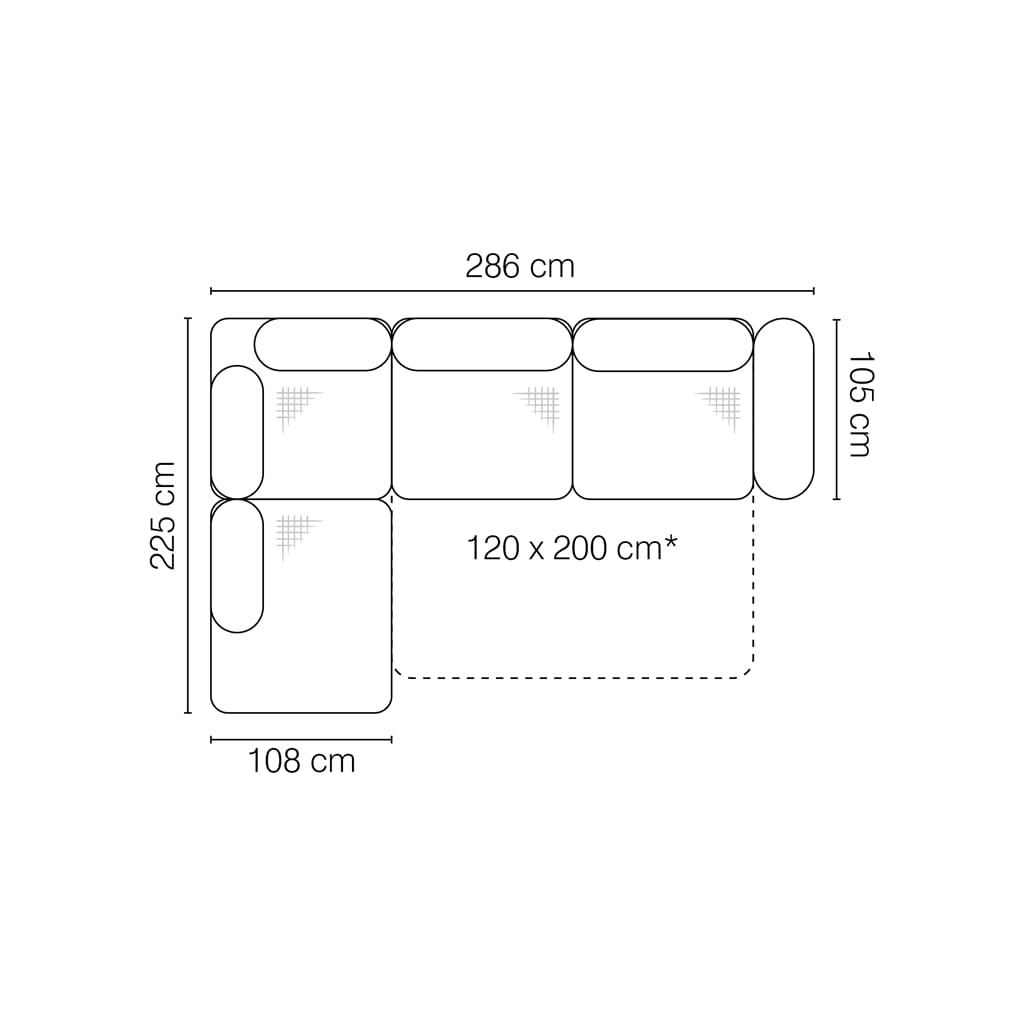 Narożnik 1 ROSSO 286 cm z Funkcją Spania i Pojemnikiem na Pościel