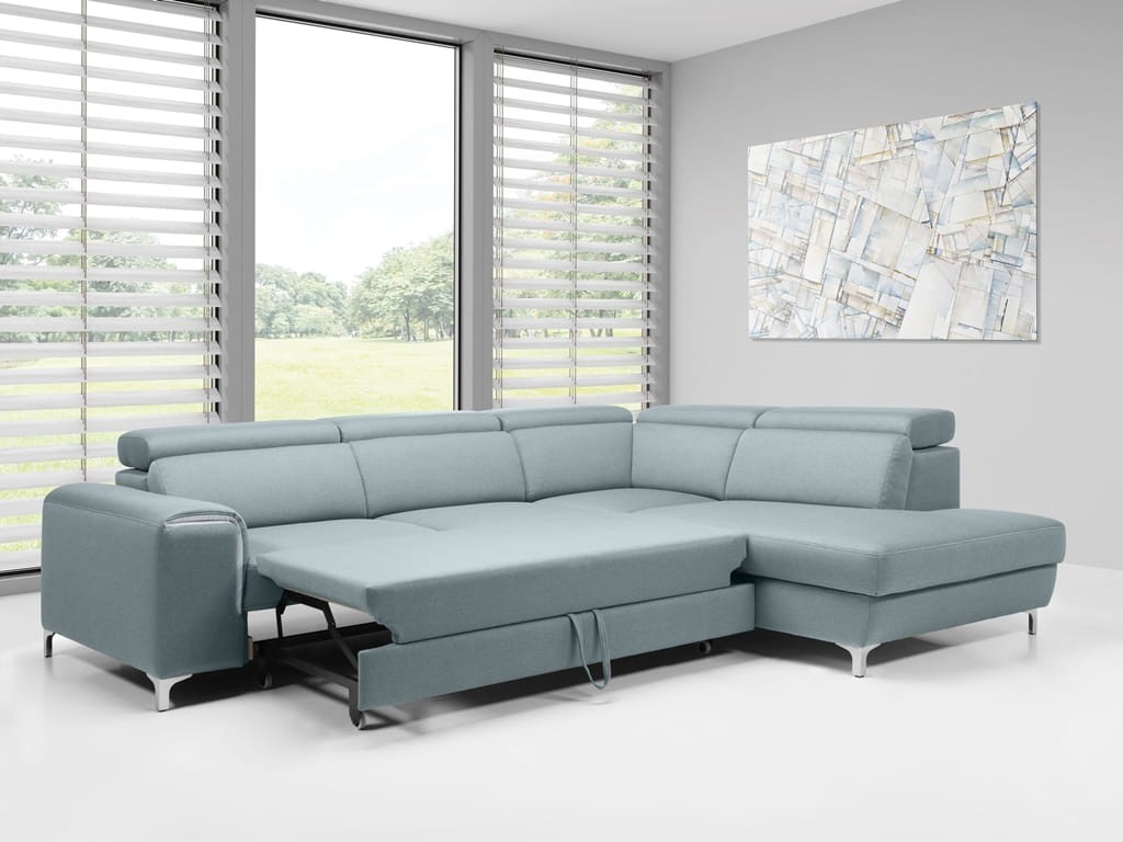 Model ten oferuje praktyczną funkcję spania, która w kilka chwil zamienia mebel w wygodne miejsce noclegowe dla Twoich gości. Dodatkowym atutem jest wbudowana szuflada na pościel, która pomaga utrzymać porządek w salonie. To inteligentne rozwiązanie, które sprawdzi się w każdym nowoczesnym domu.