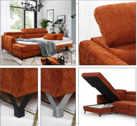 Aby ułatwić organizację przestrzeni, mebel wyposażono w ukryty pojemnik na pościel, znajdujący się w otomanie. To dyskretny schowek na dodatkowe koce czy poduszki, dzięki któremu w Twoim salonie zawsze zapanuje porządek. Wybierając model Marozzo 265 cm, zyskujesz luksusowy wygląd bez rezygnacji z kluczowych funkcjonalności.