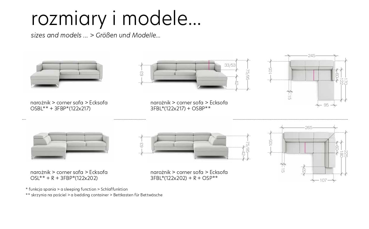 Narożnik 2 MAROZZO 265 cm z Funkcją Spania i Pojemnikiem na Pościel