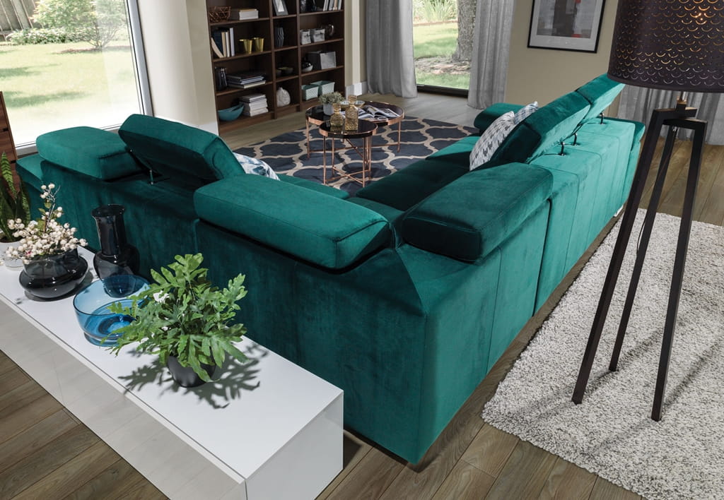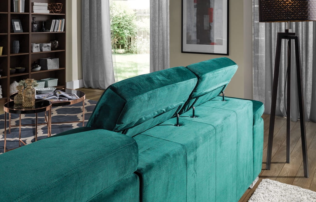 Za Twój codzienny komfort odpowiadają zaawansowane, regulowane zagłówki. Dzięki nim możesz samodzielnie dostosować wysokość oparcia, zapewniając idealne wsparcie dla karku podczas czytania lub oglądania telewizji. Ergonomicznie wyprofilowane siedziska sprawiają, że narożnik staje się ulubioną strefą relaksu dla wszystkich domowników, gwarantując wypoczynek na najwyższym poziomie.