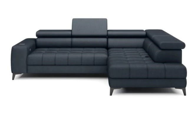 Nowoczesny, kompaktowy narożnik, wyposażony w elektryczną funkcję wysuwu siedziska 0 - 27 cm oraz pięć ruchomych zagłówków to idealne rozwiązanie dla wszystkich, którzy oczekują wysokiego komfortu wypoczynku.