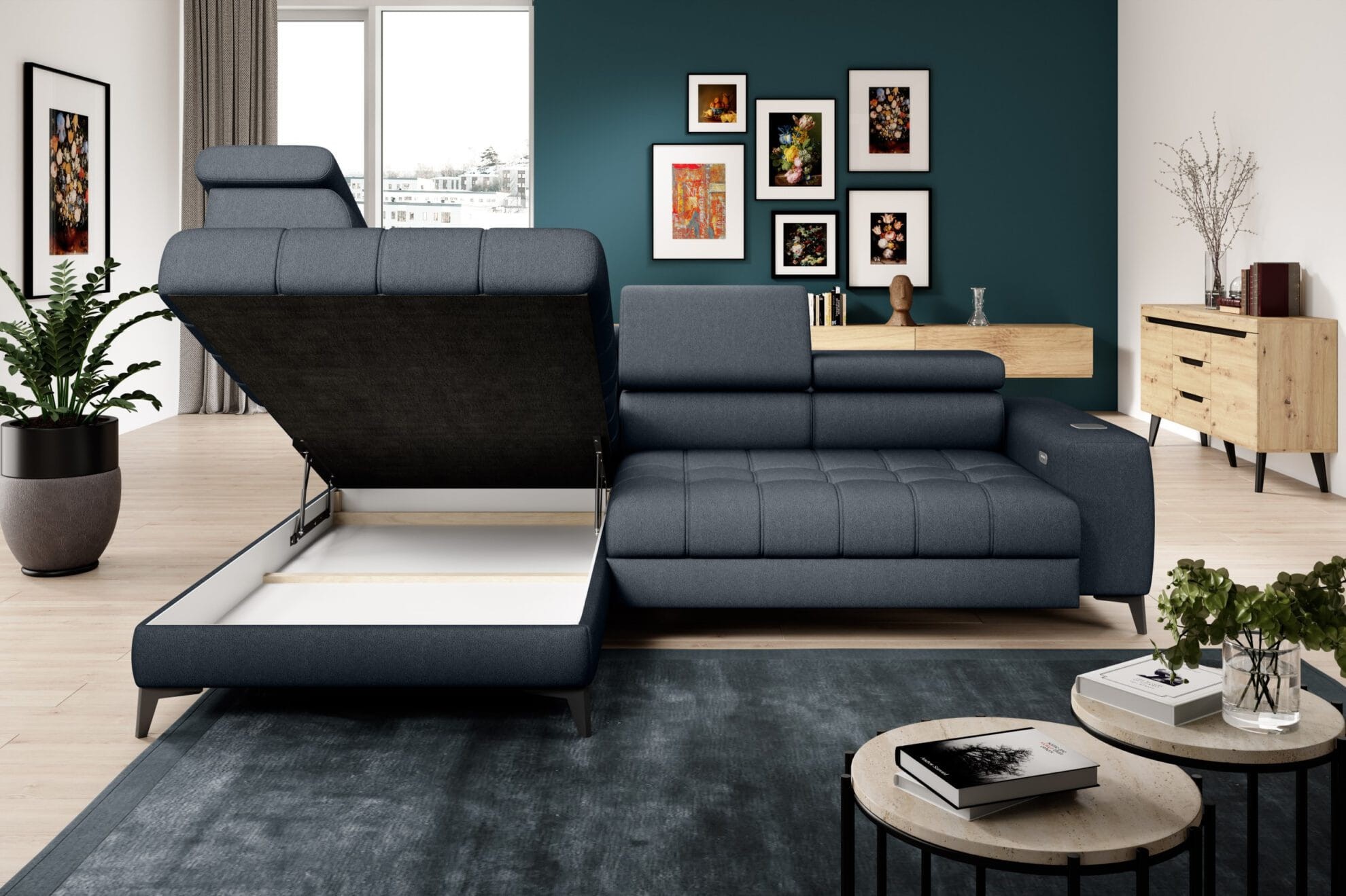 Narożnik BAGGIO Elektrycznie Wysuwane Siedzisko Do Salonu