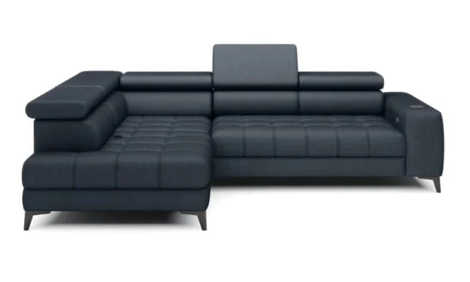 Nowoczesny, kompaktowy narożnik, wyposażony w elektryczną funkcję wysuwu siedziska 0 - 27 cm oraz pięć ruchomych zagłówków to idealne rozwiązanie dla wszystkich, którzy oczekują wysokiego komfortu wypoczynku.