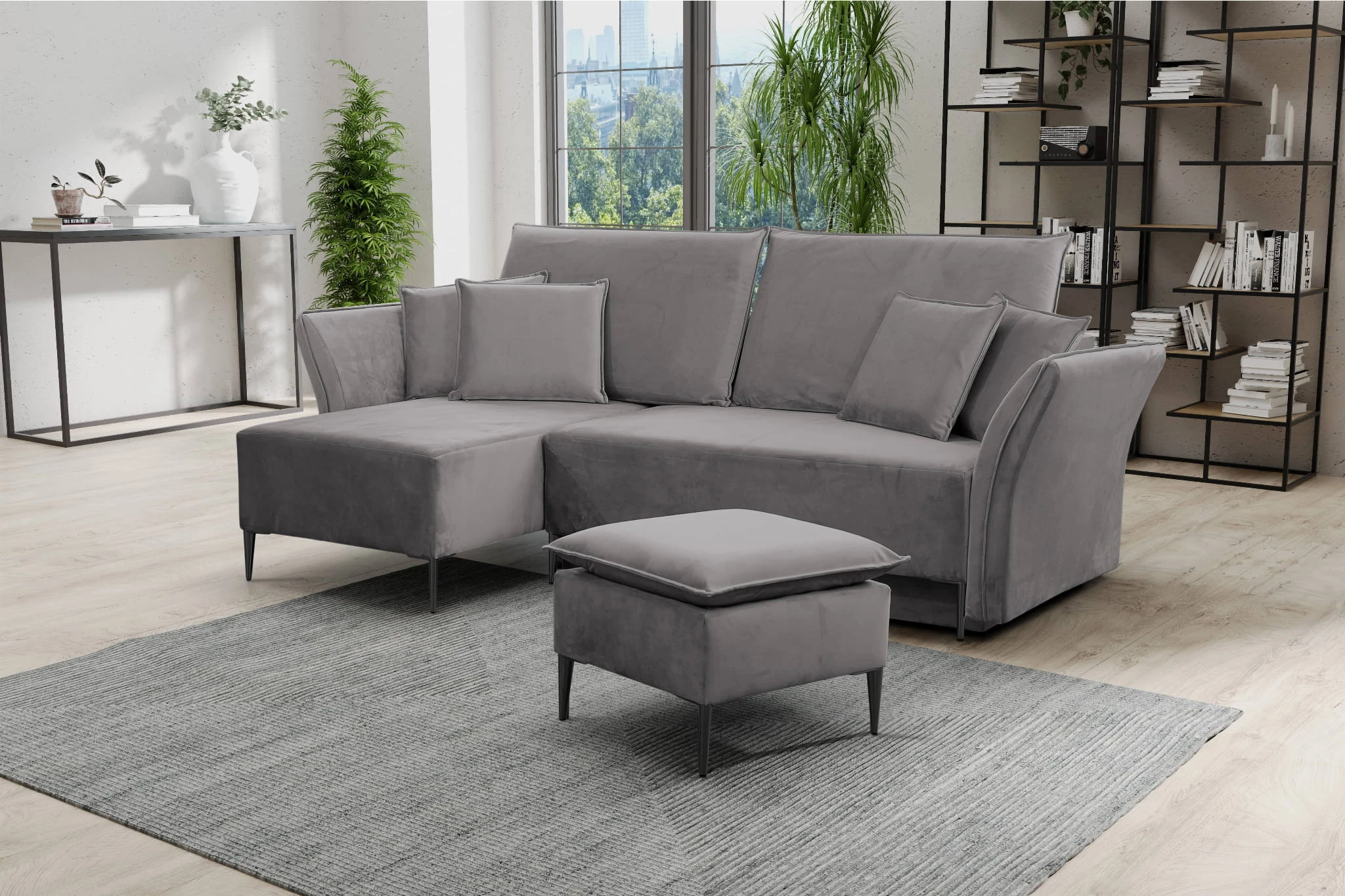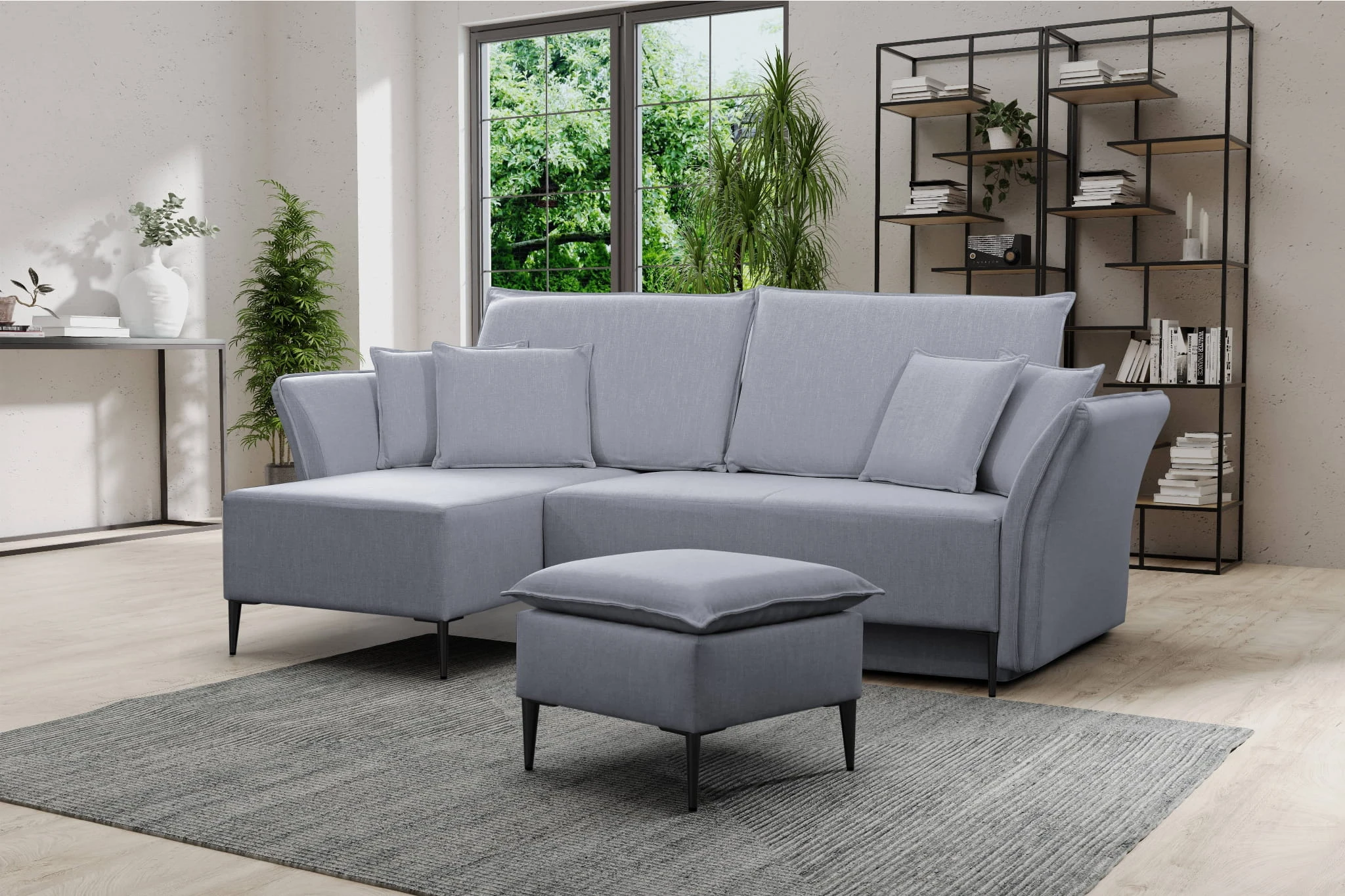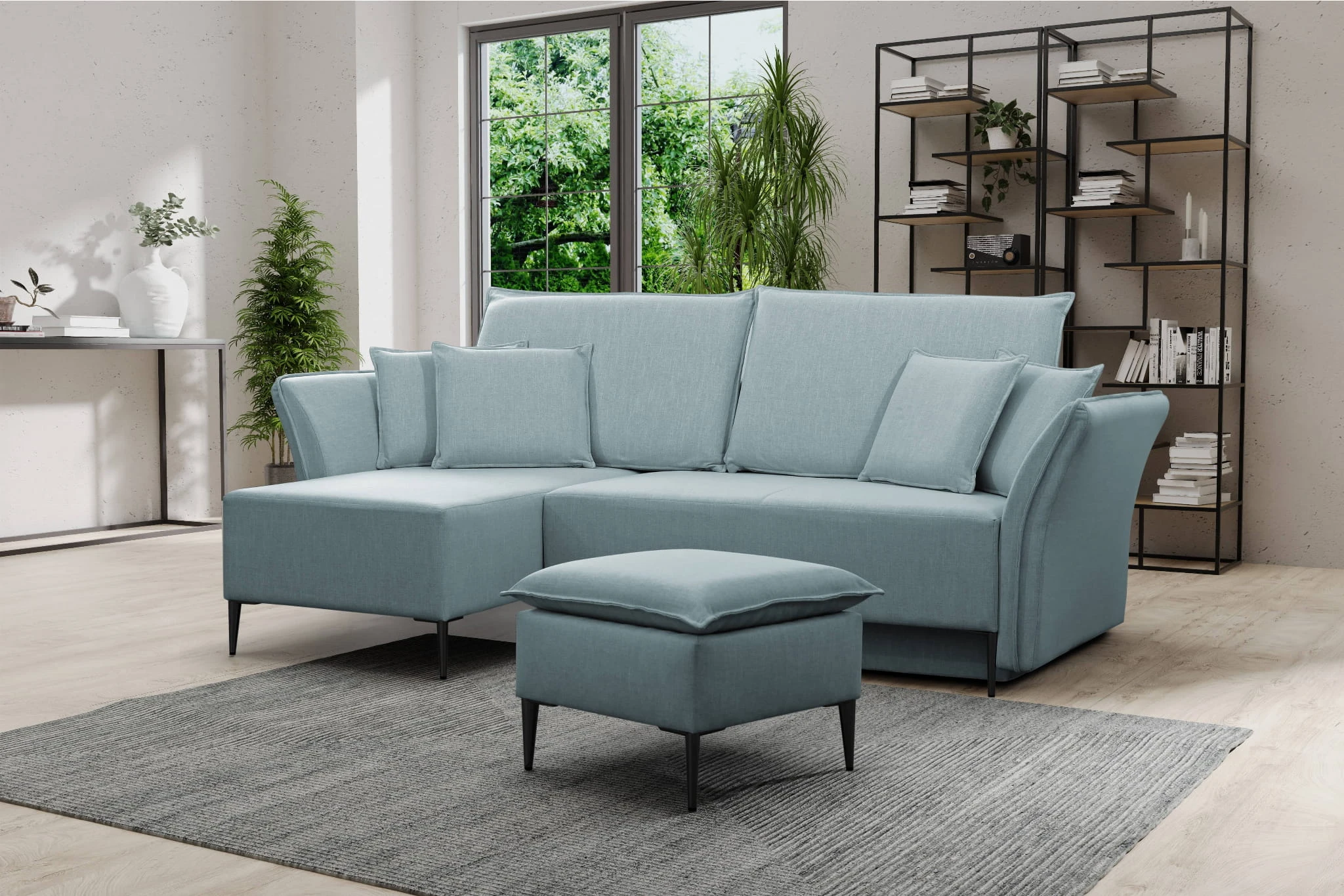 To nowoczesny narożnik z Seri Bregi która składa się z sofy oraz pufy, do wyboru mamy aż trzy kolory nóżek srebrne, złote oraz czarne.